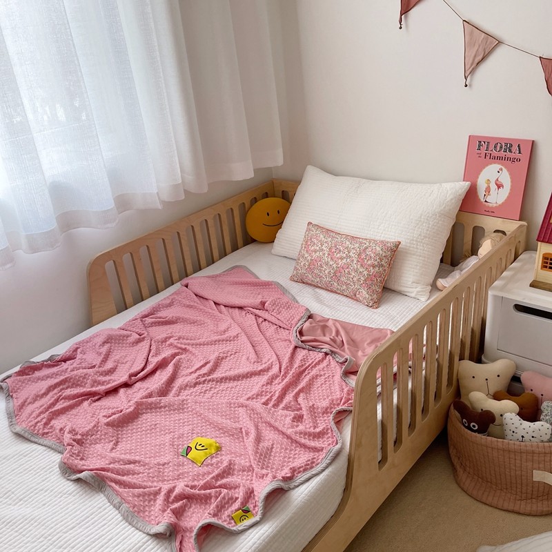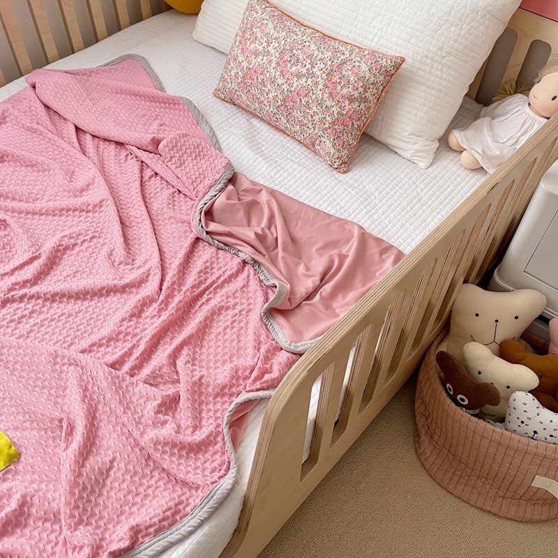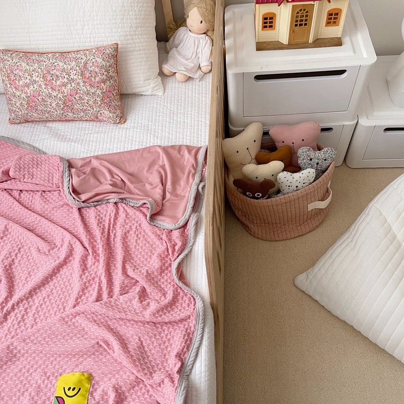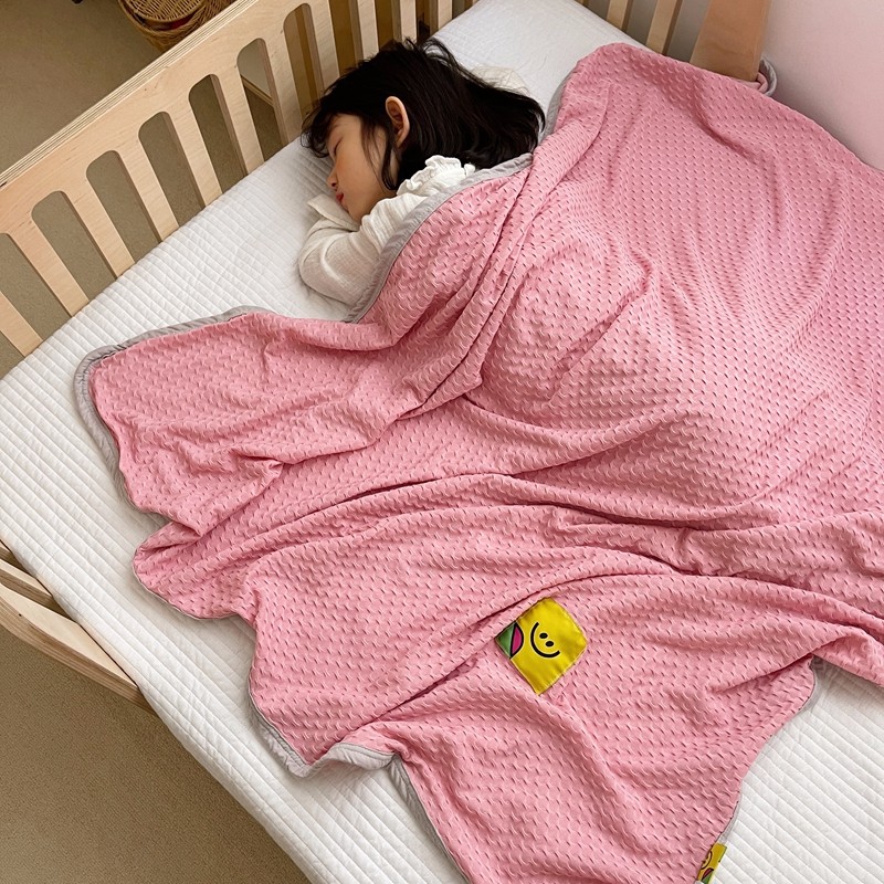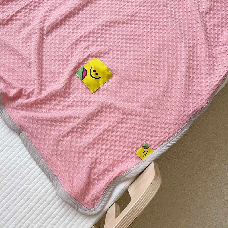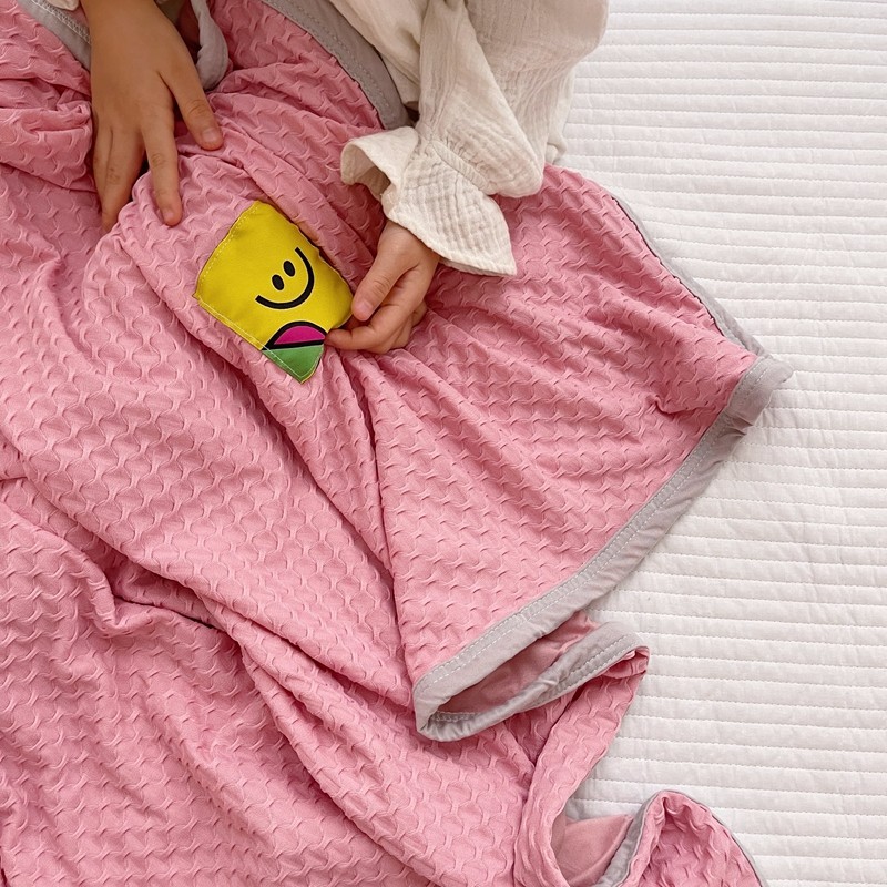 星期八 2021新款华夫格笑脸毯儿童毯空调毯粉