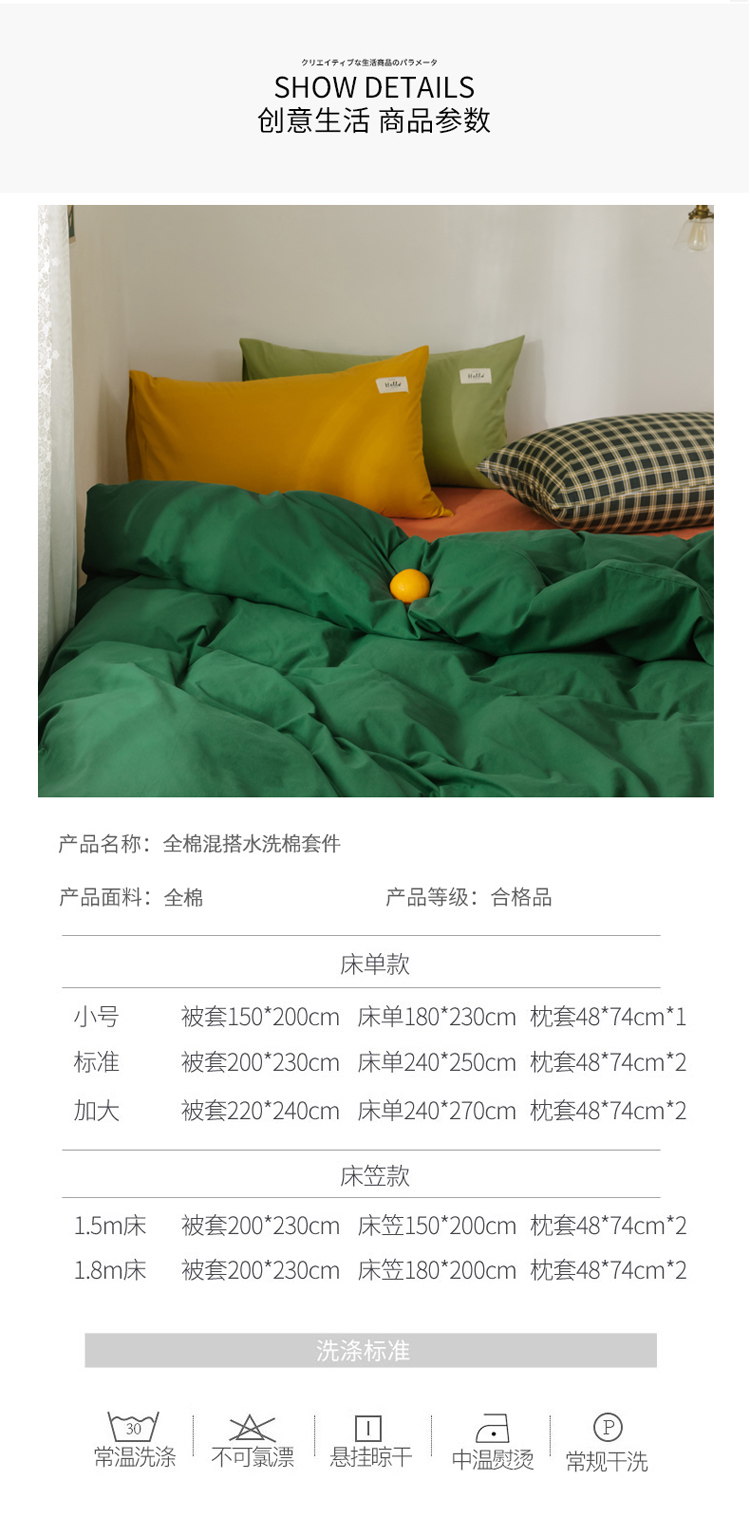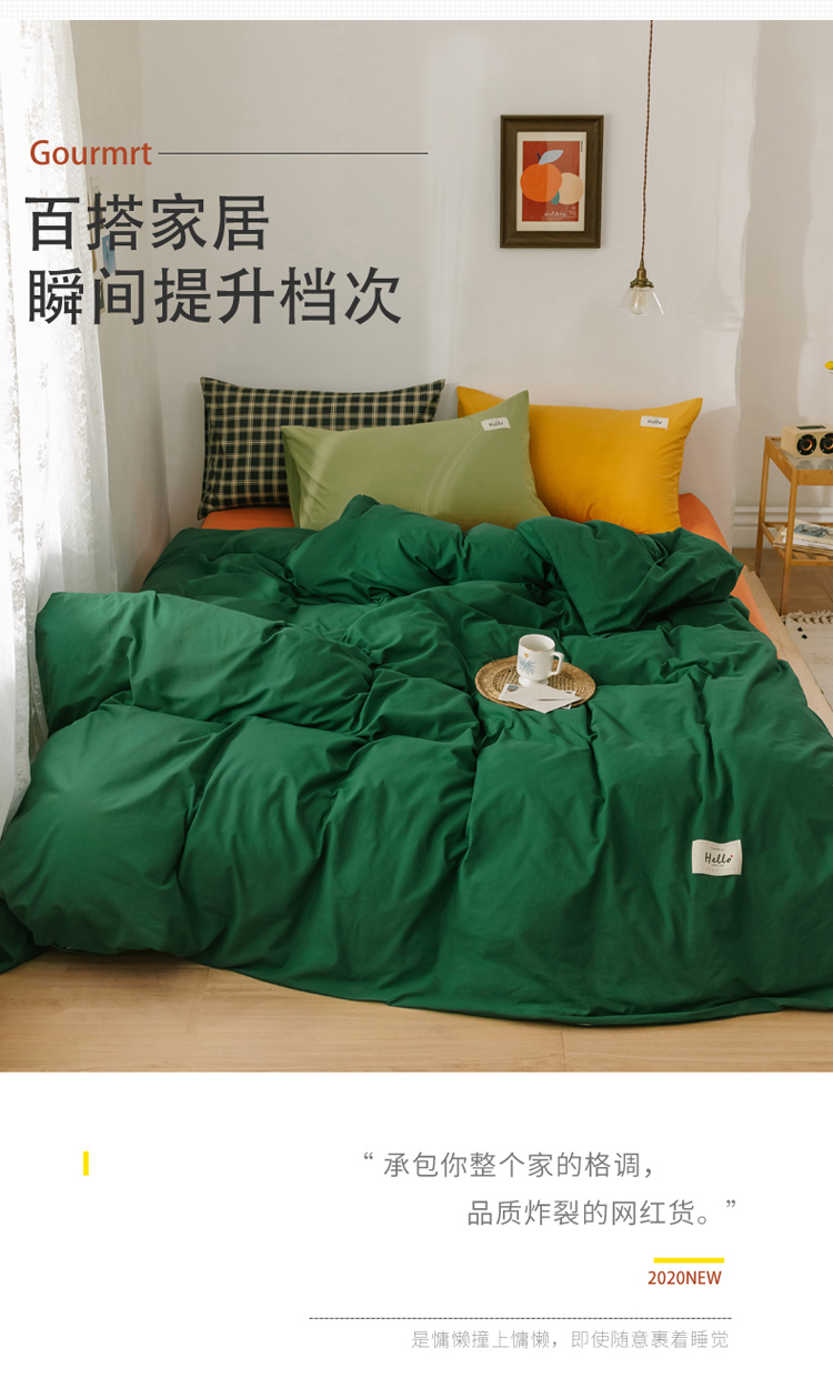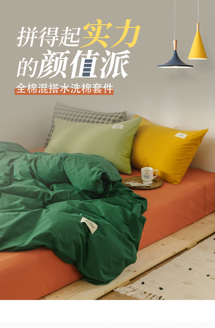 商品名称:雅居纺 2022新款全棉混搭水洗棉四件套 生机绿