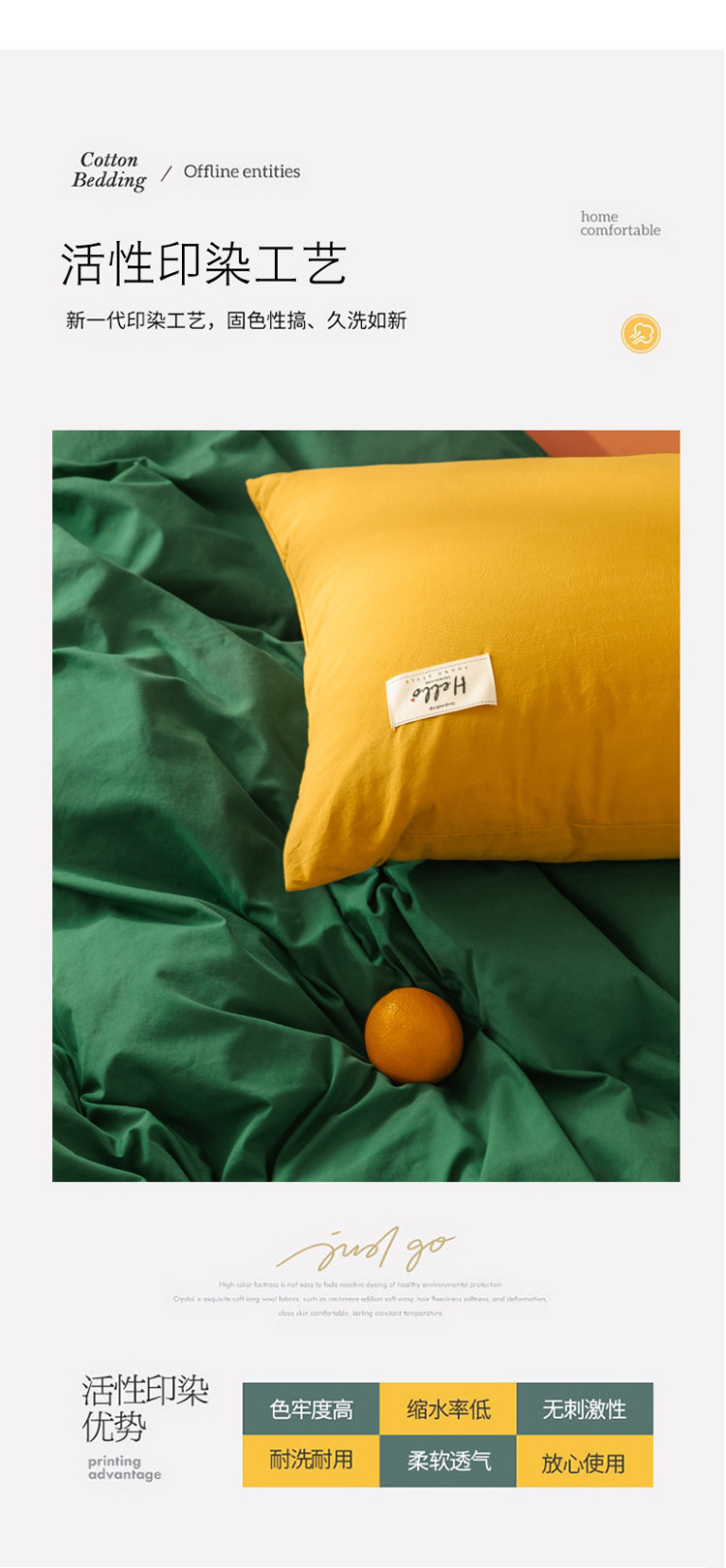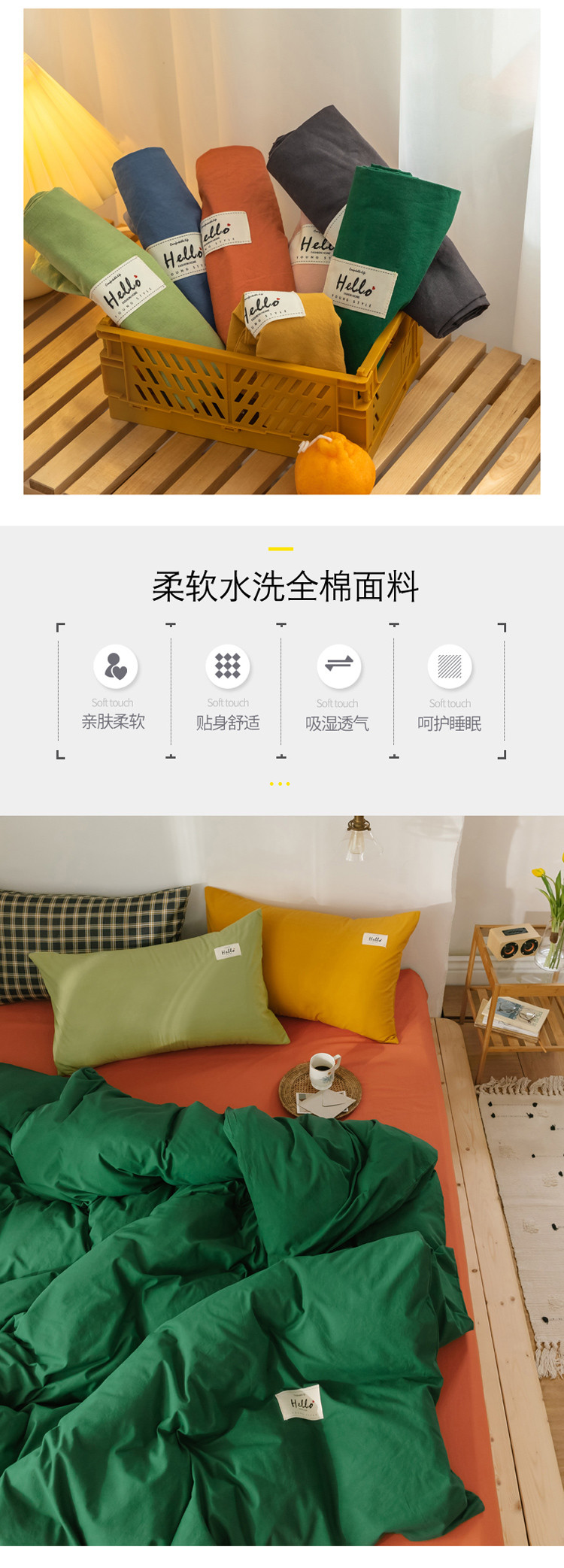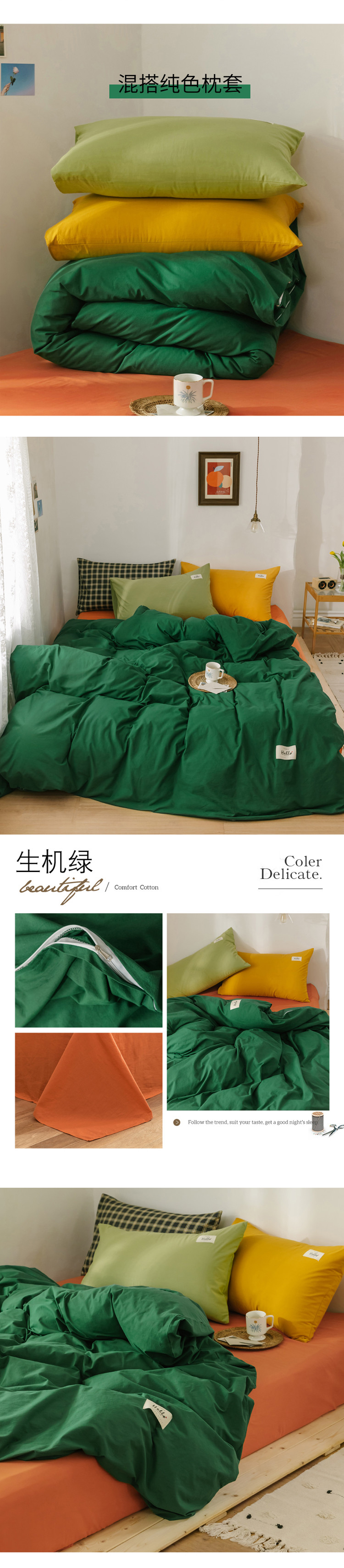 商品名称:雅居纺 2022新款全棉混搭水洗棉四件套 生机绿