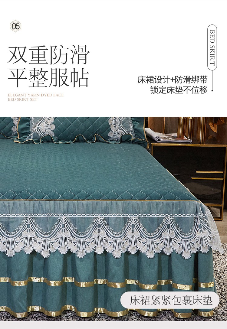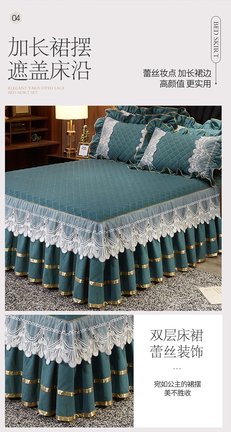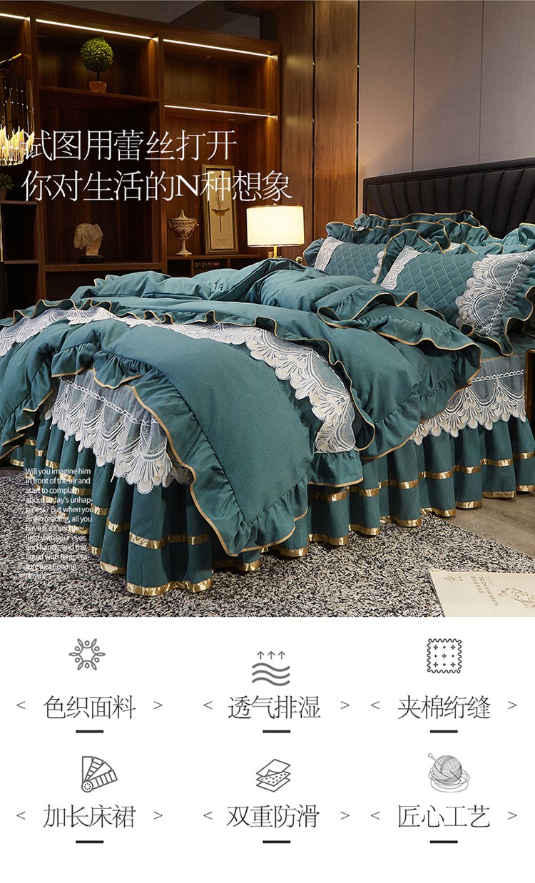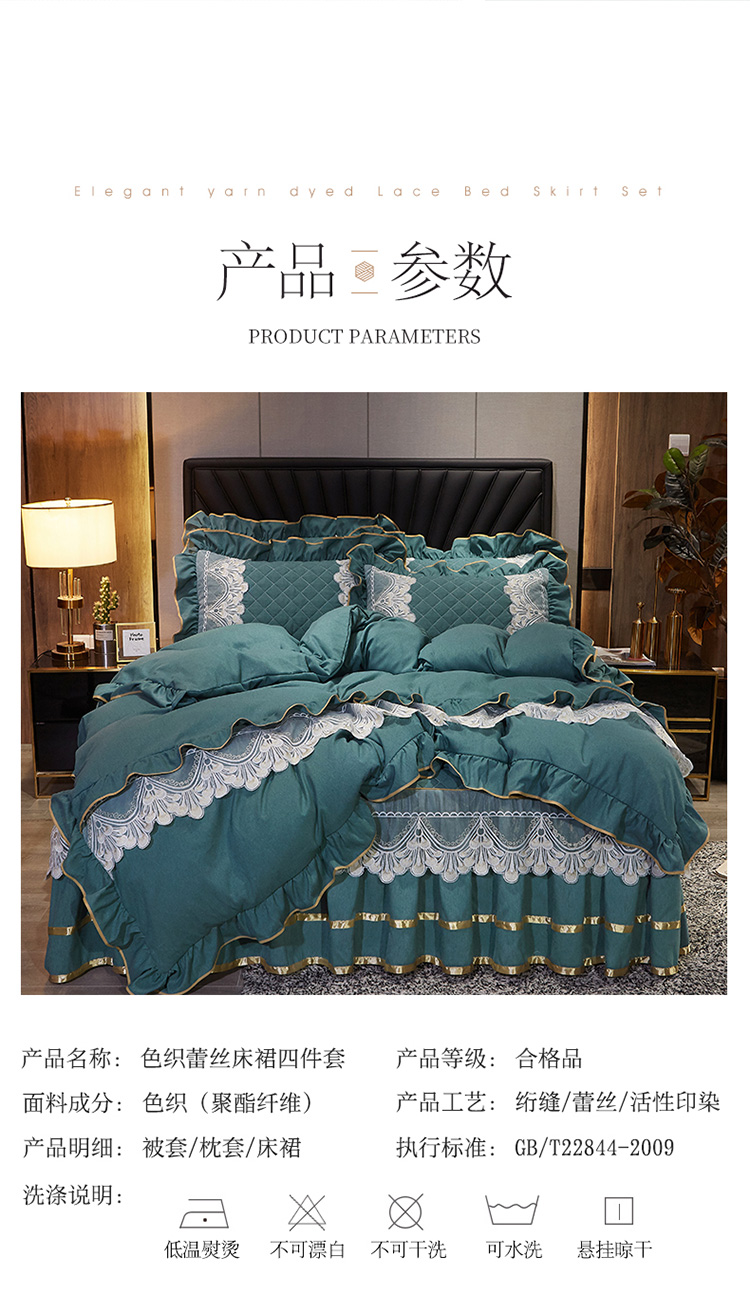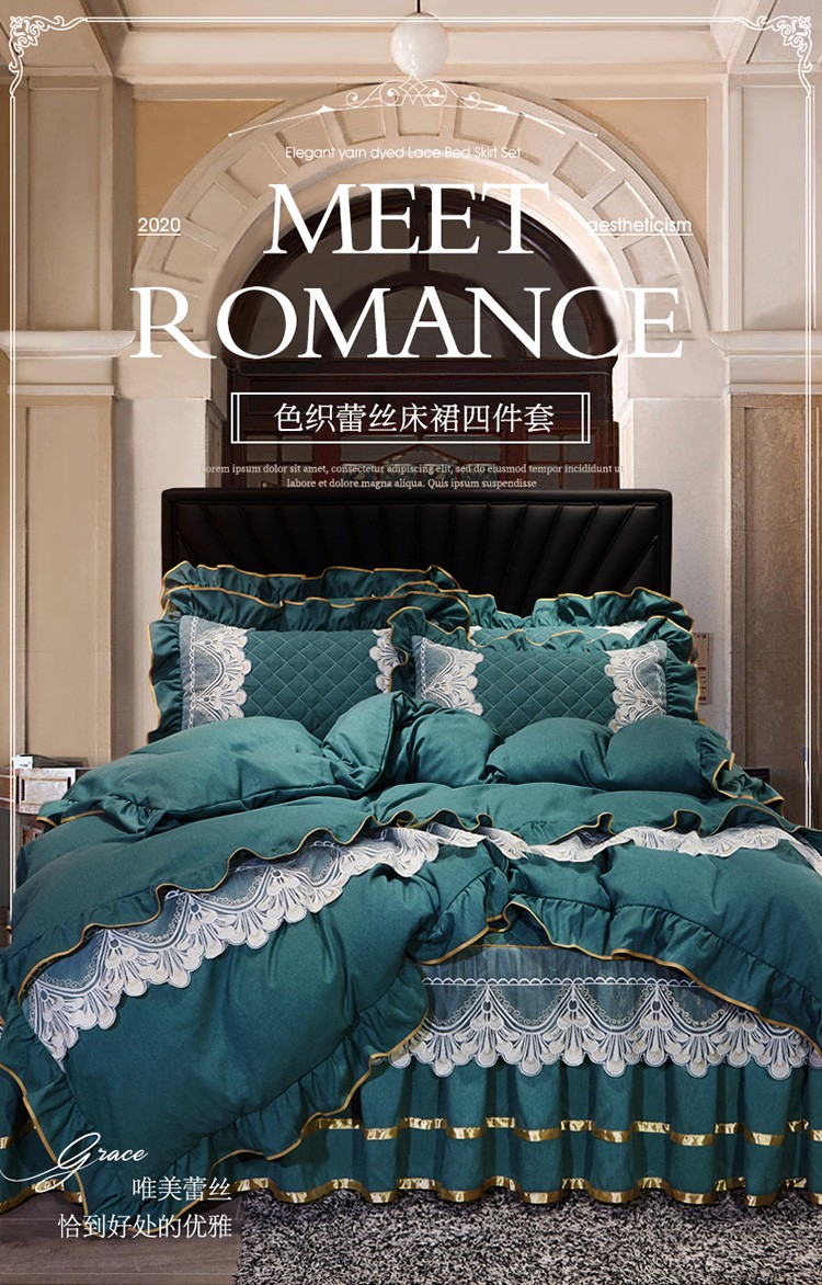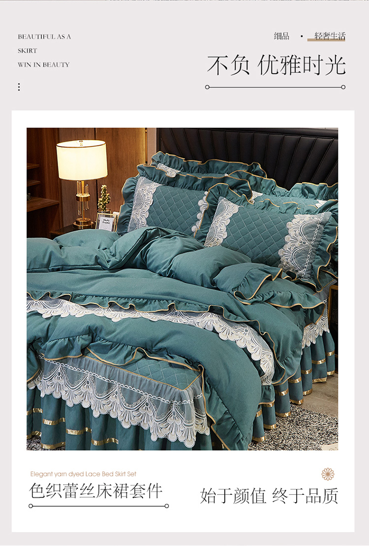商品名称:网红馆 2025新款芭莎风情床裙四件套 黛绿色