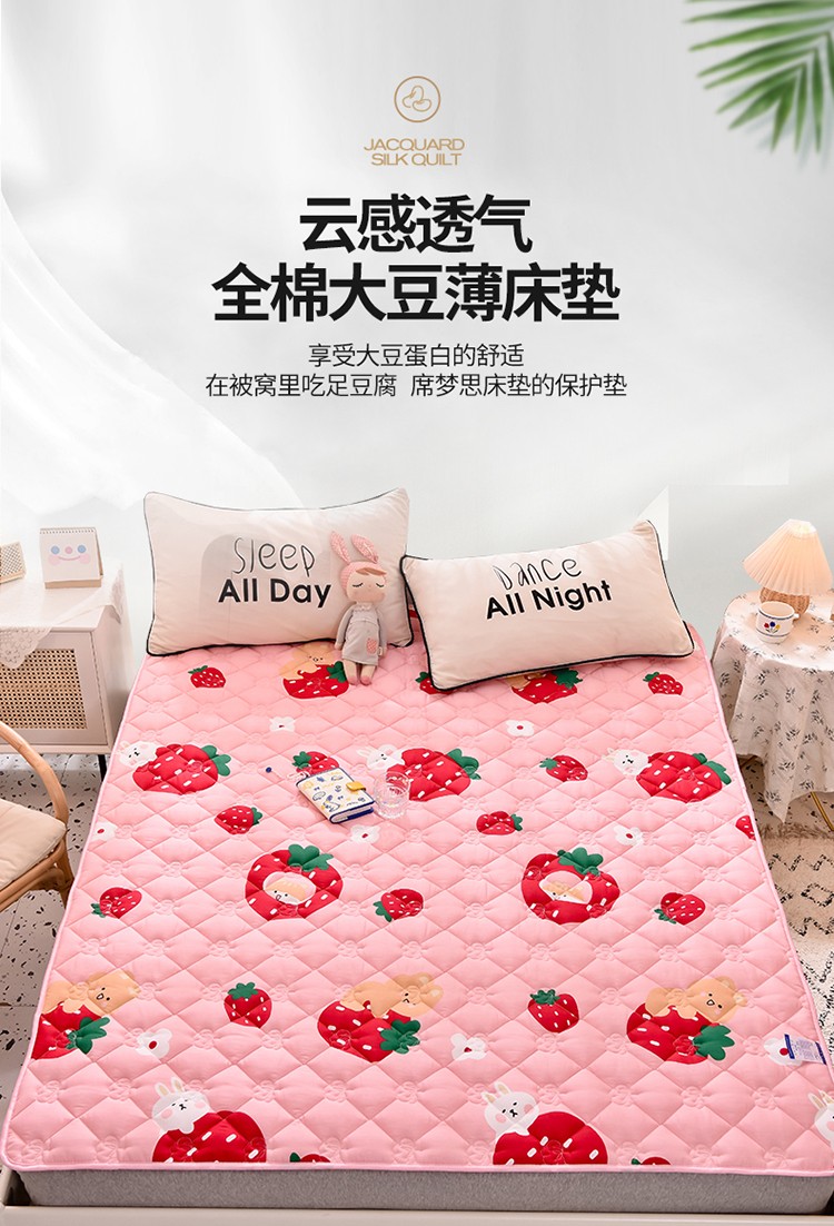 商品名称:寐珂 2025新款全棉大豆纤维床垫薄款 草莓乐园