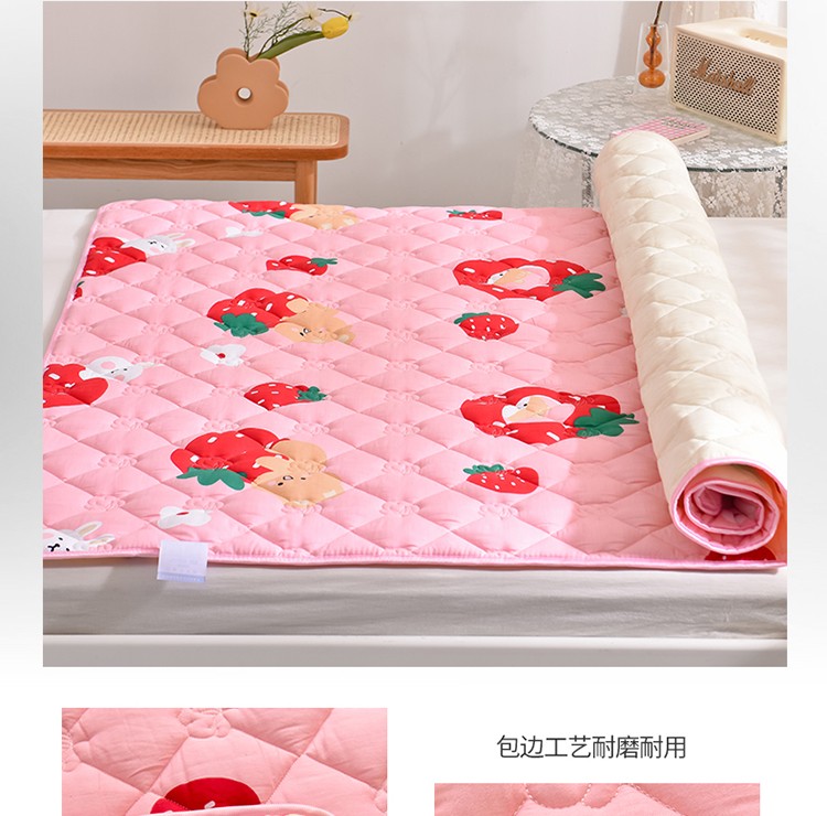 寐珂 2025新款全棉大豆纤维床垫薄款 草莓乐园