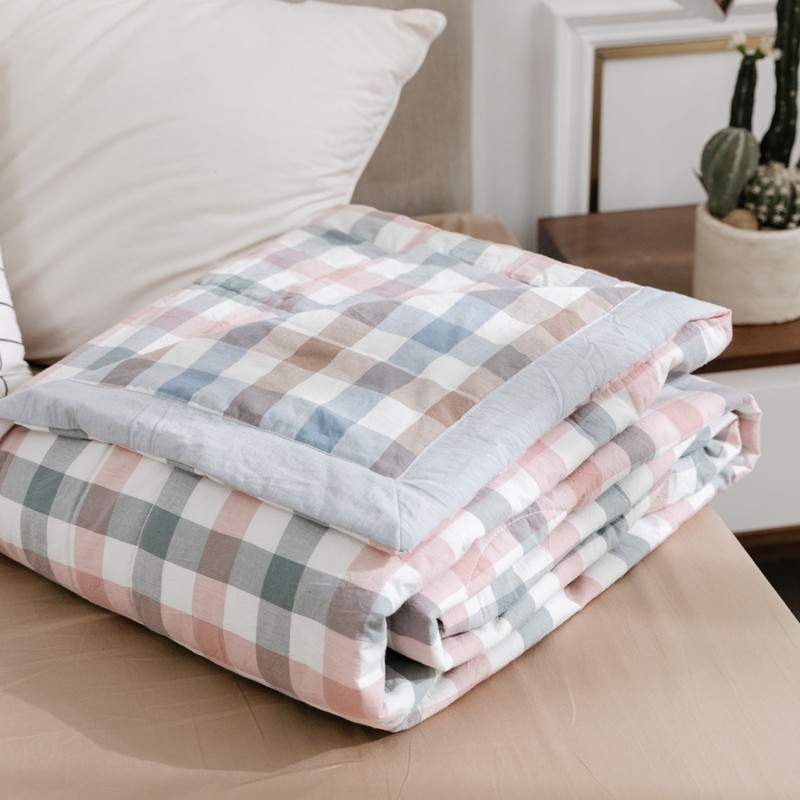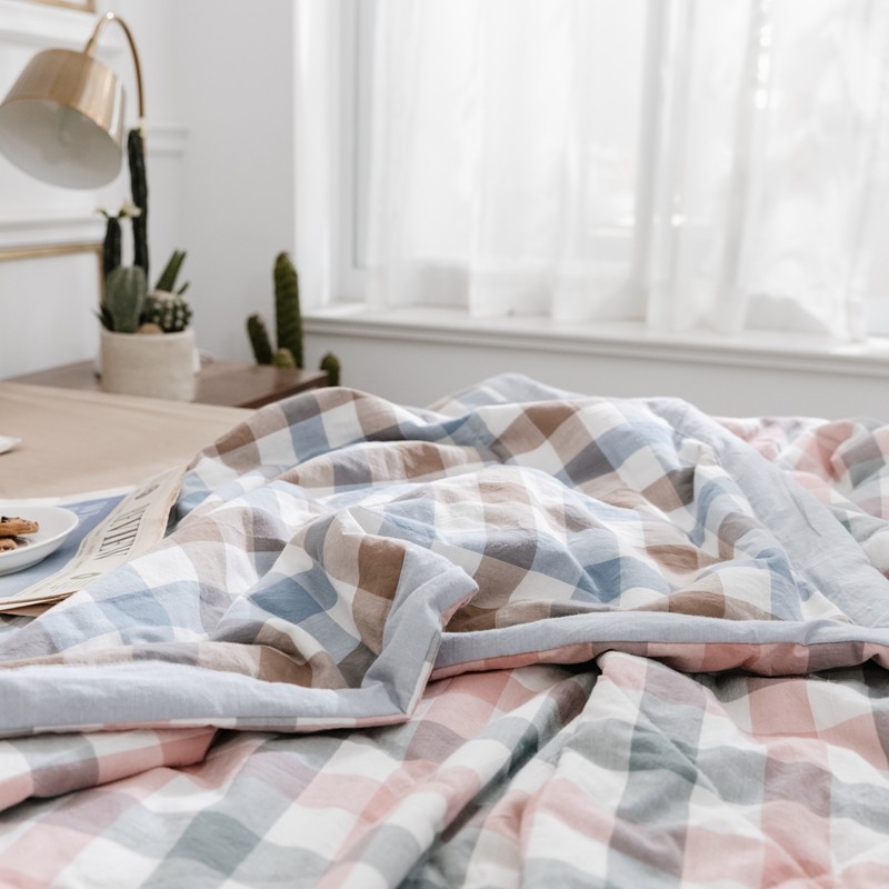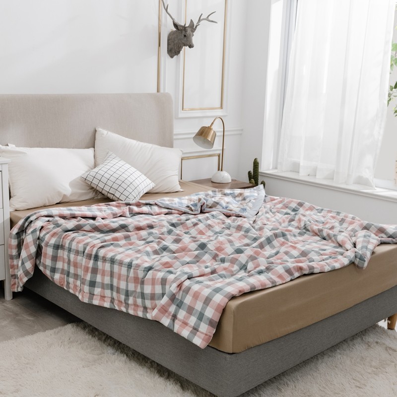 安莱生活 2021新款双拼小格细条中格夏被 七彩粉+七彩兰