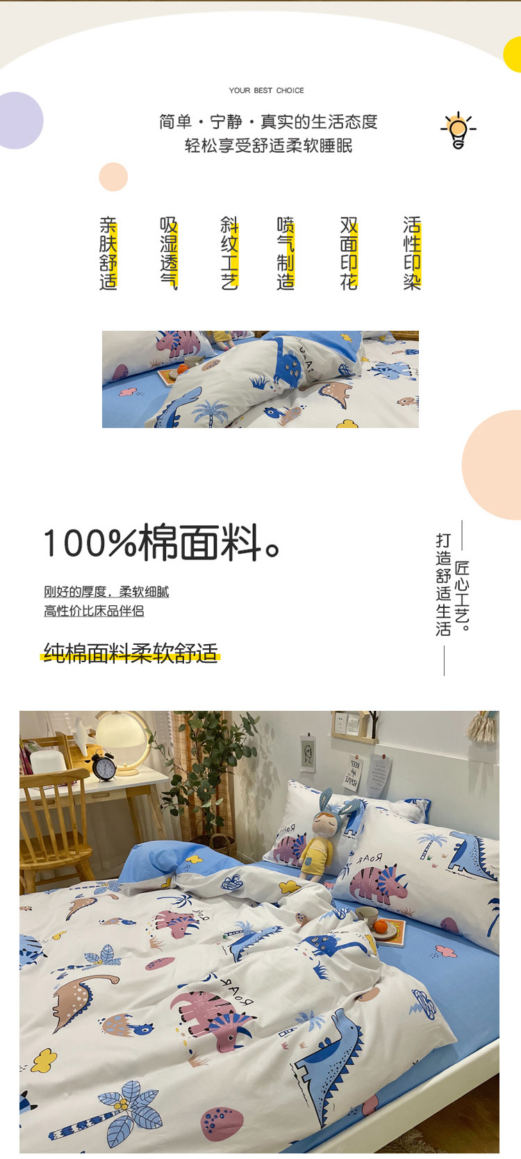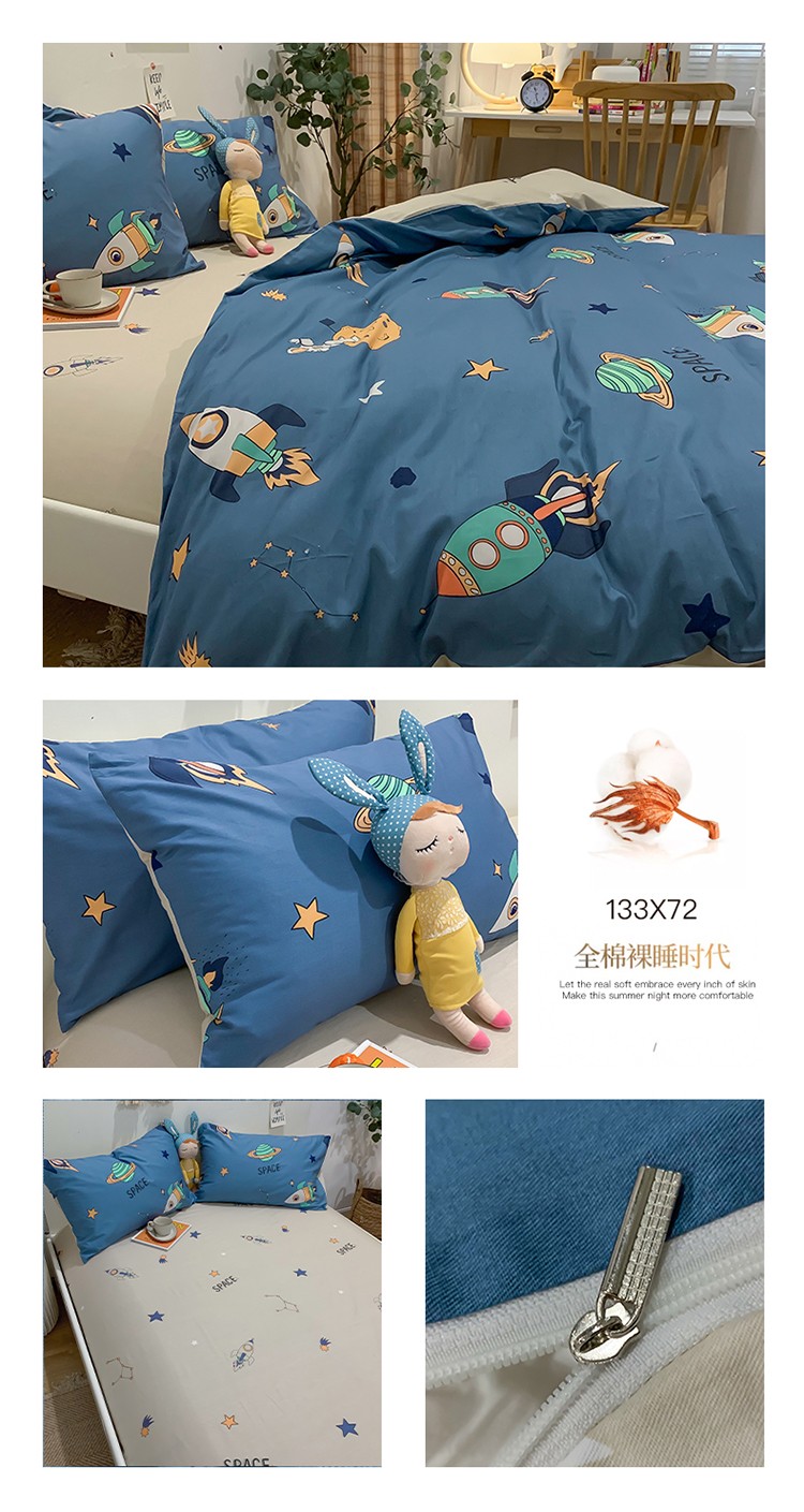 (总)西引力 2022新款全棉印花四件套,蓝色心情,小海豚,宇航员