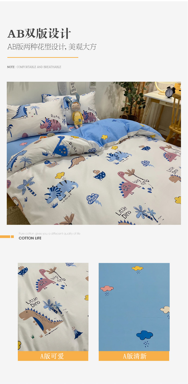 (总)西引力2023新款全棉AB版童趣印花套件系列四件套,布鲁斯,流金岁月,律动蓝,煤球,英伦蓝,英伦字母,云端