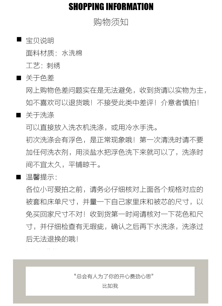 3、通州区市场监督局友情提醒,近期涉及到床上用品不褪色不掉毛不缩水的投诉和以世界知名品牌图案为面料的床品举报较多。请各商家自检自查,对照整改或进行下架处理。