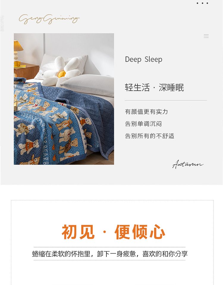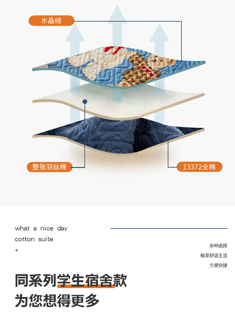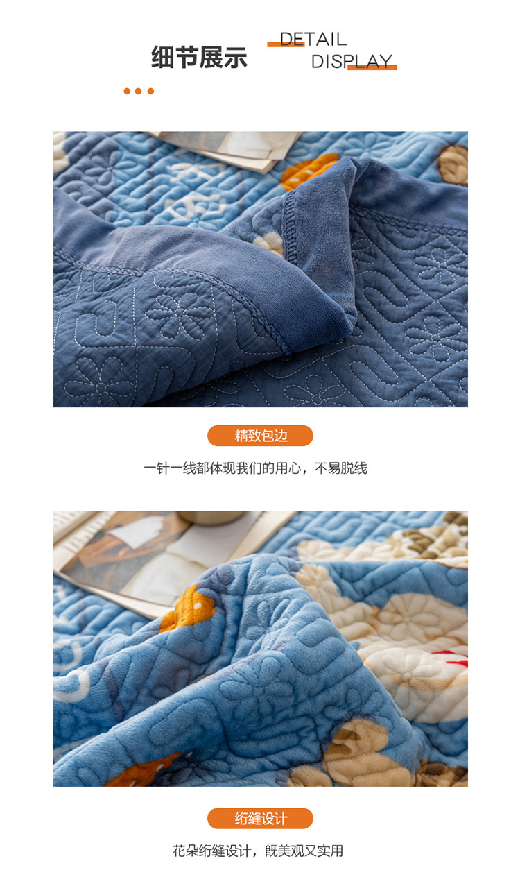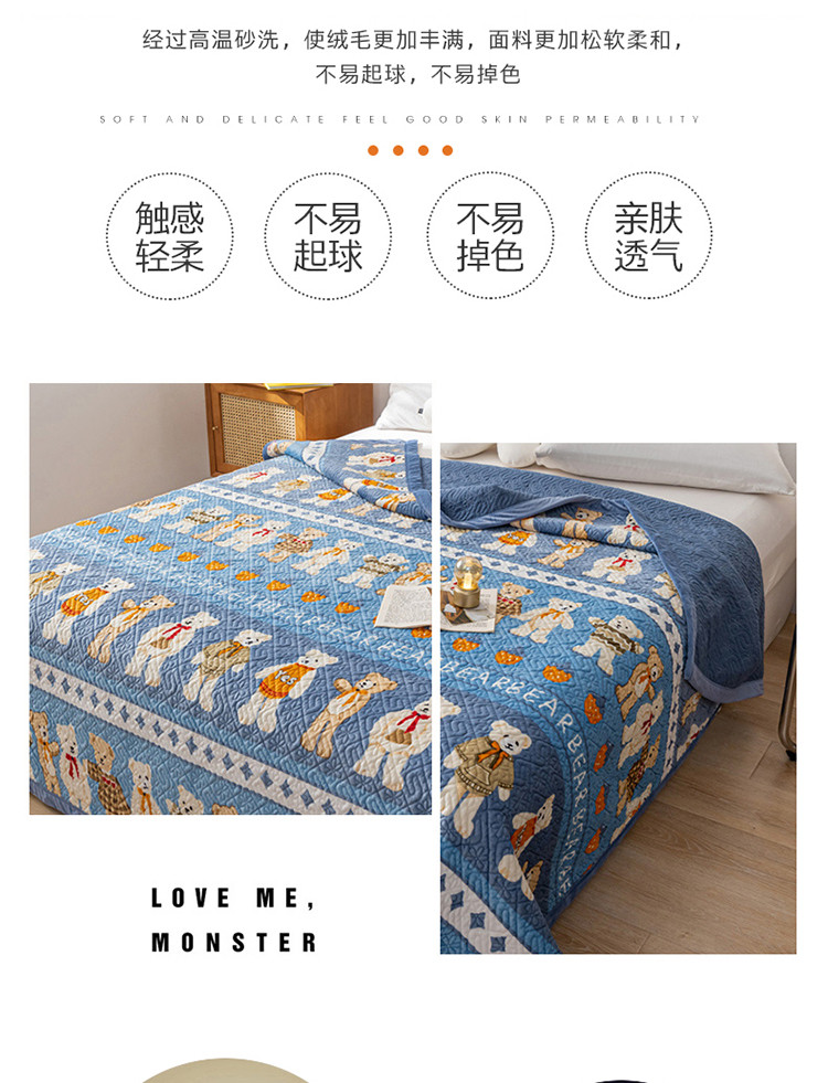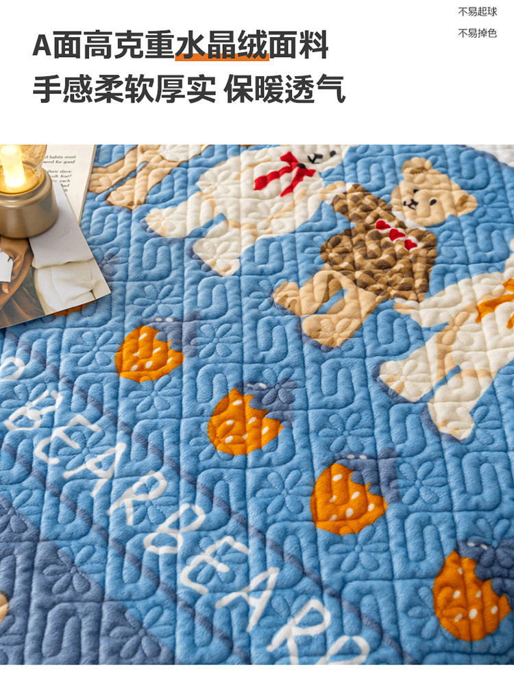 商品名称:卡奥 AB版水晶绒夹棉盖毯纯棉床盖加厚毛毯学生宿舍床垫伙伴熊
