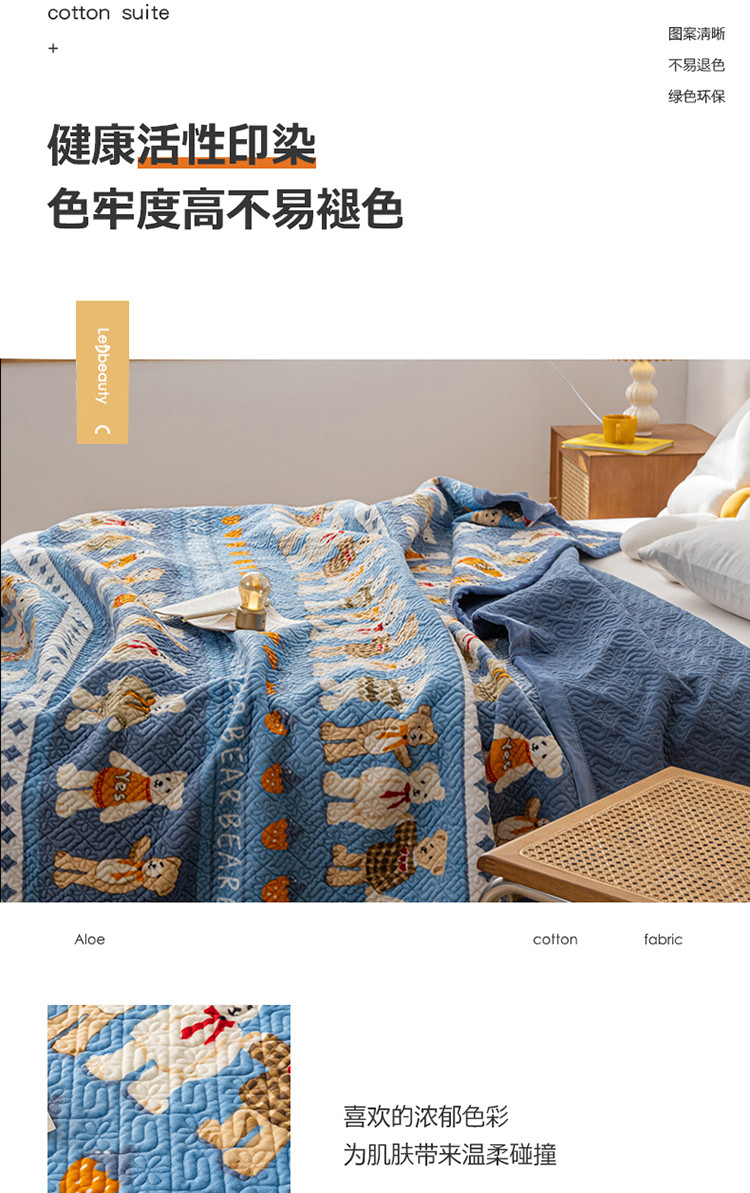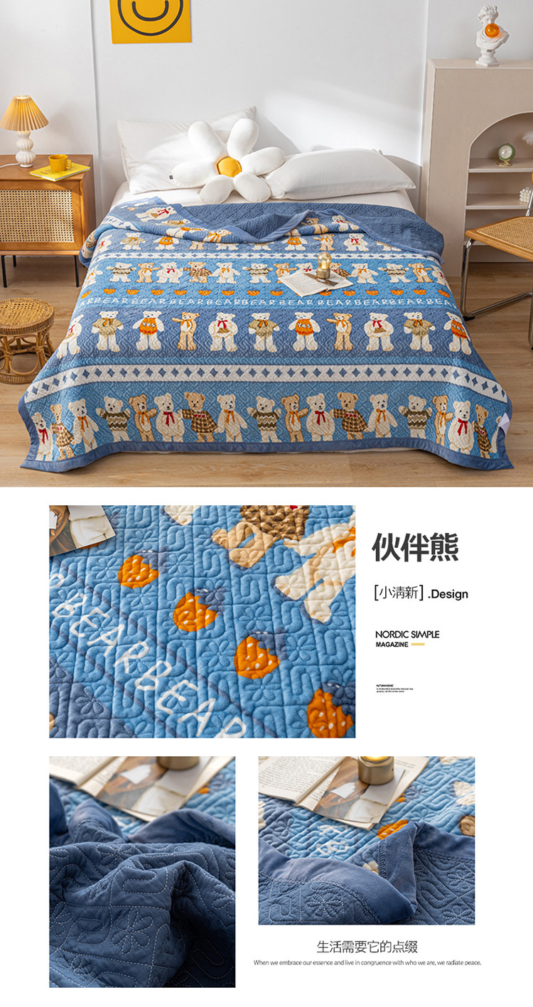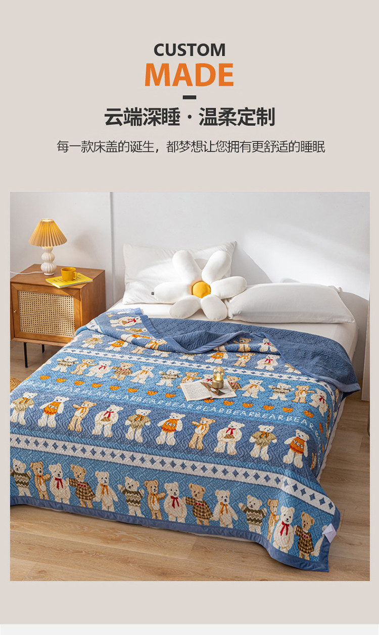 卡奥 AB版水晶绒夹棉盖毯纯棉床盖加厚毛毯学生宿舍床垫伙伴熊