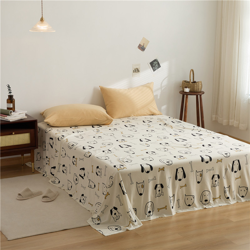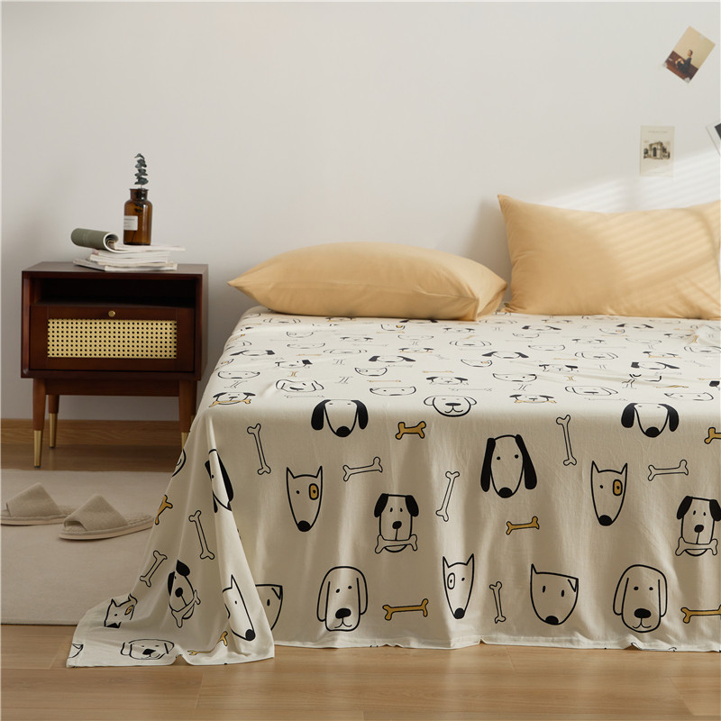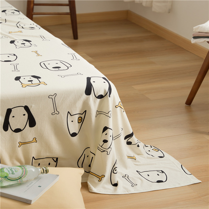 原研家居 新款kinfolk原研针织棉印花单床单 小狗