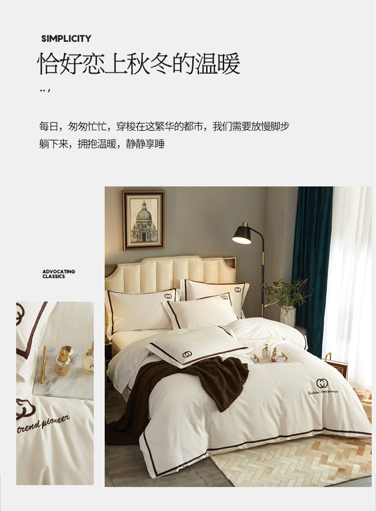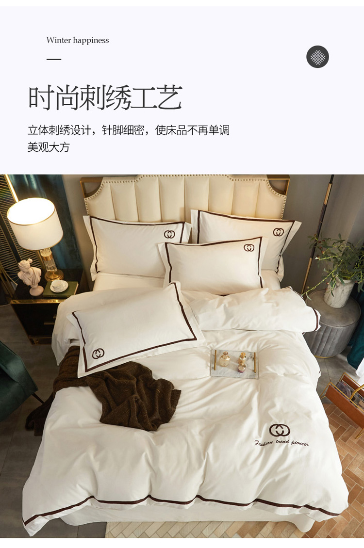 启航2021秋冬爆款全棉磨毛简约刺绣款四件套时尚先锋 时尚先锋-珍珠白