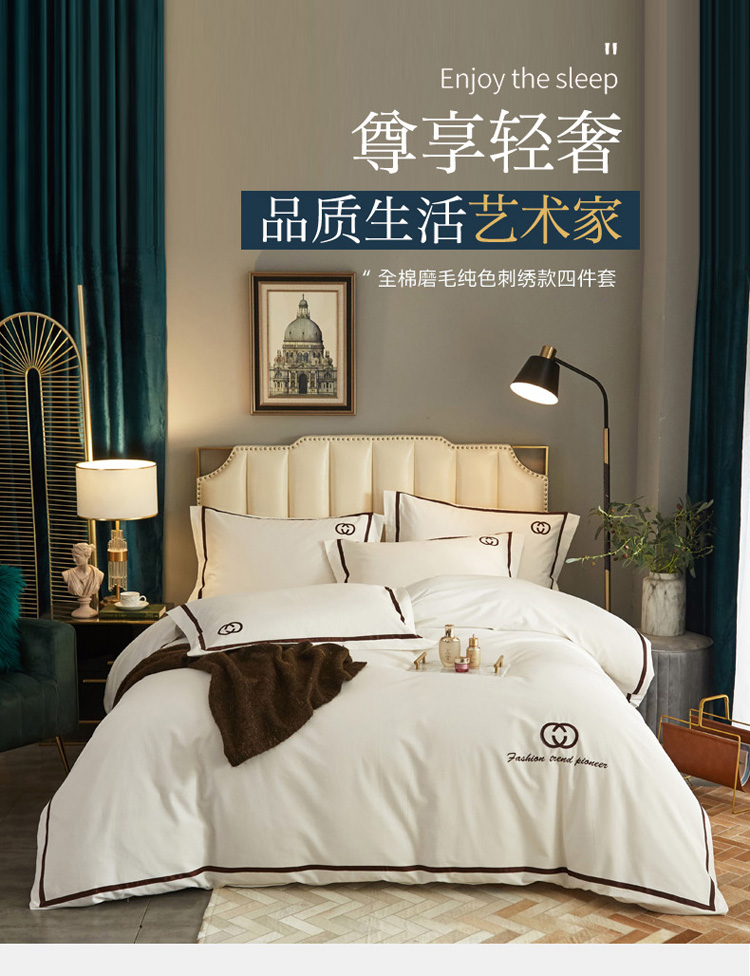 (总)启航家居 2025直播爆款全棉纯色磨毛刺绣四件套古欧时尚系列,古欧时尚宾利蓝,古欧时尚豆沙,古欧时尚浅橙,古欧时尚优雅紫,古欧时尚珍珠白