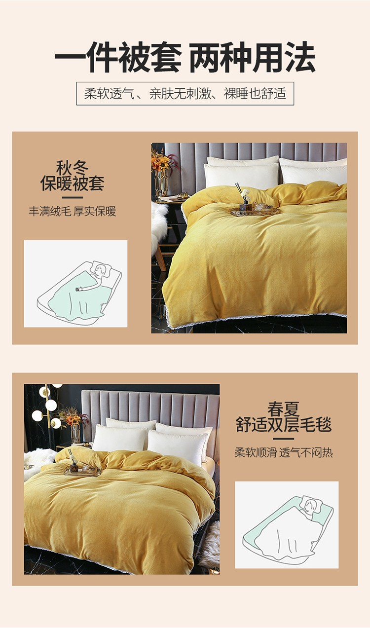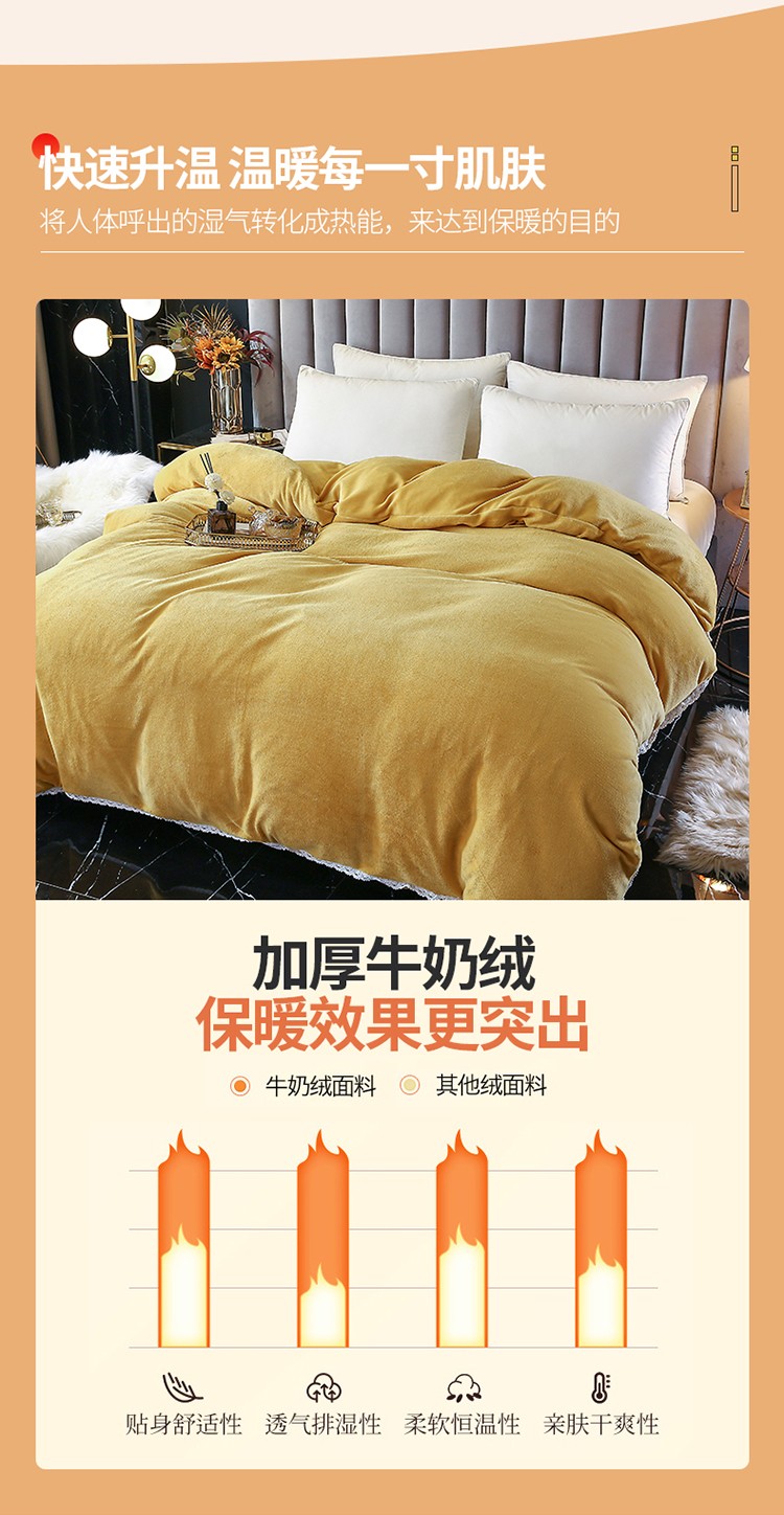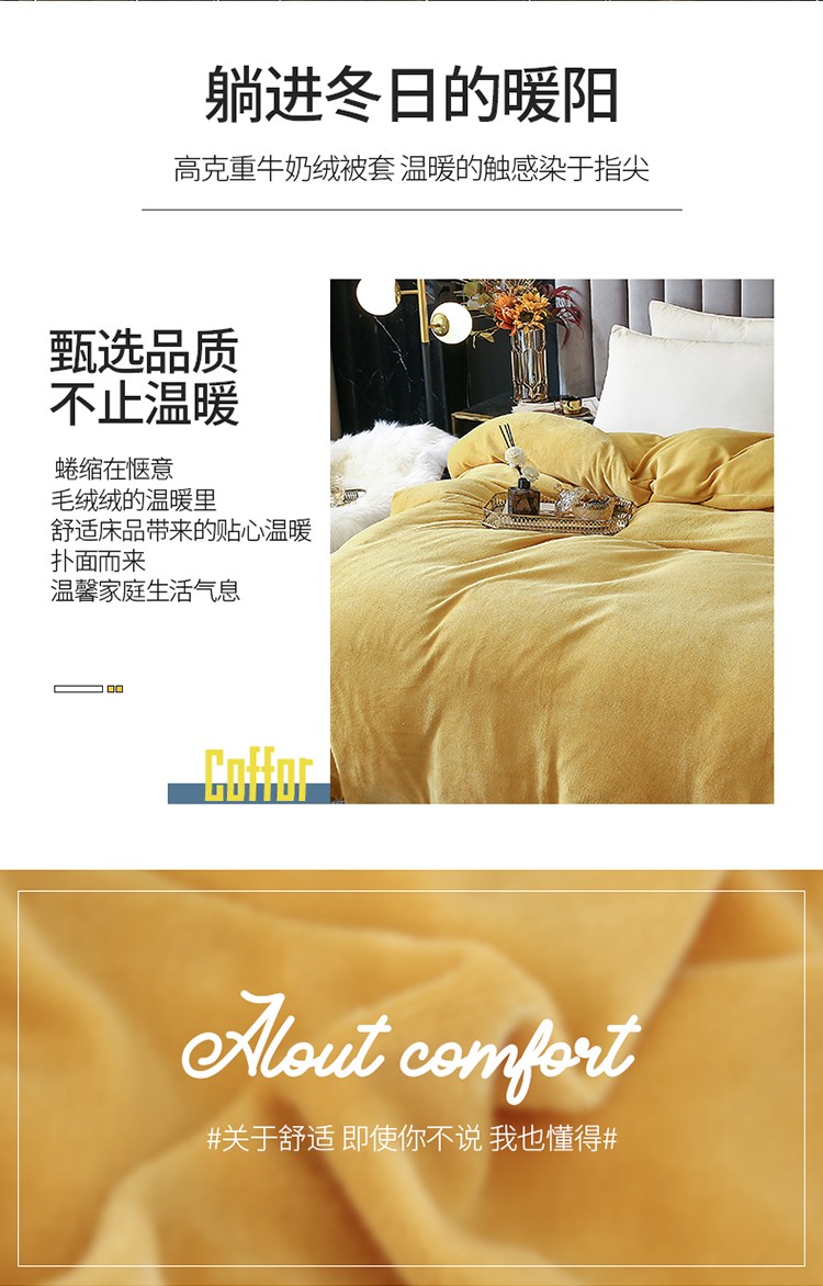商品名称:琪琪阁家纺 2021新款加厚牛奶绒单被套 姜黄