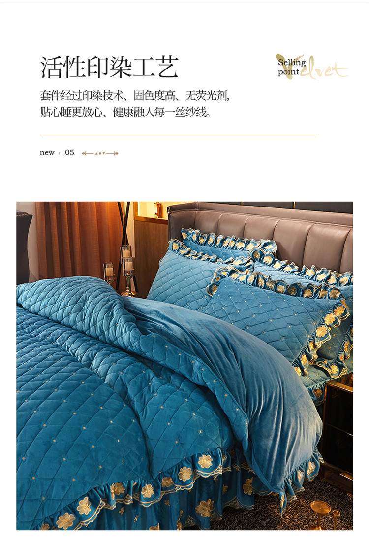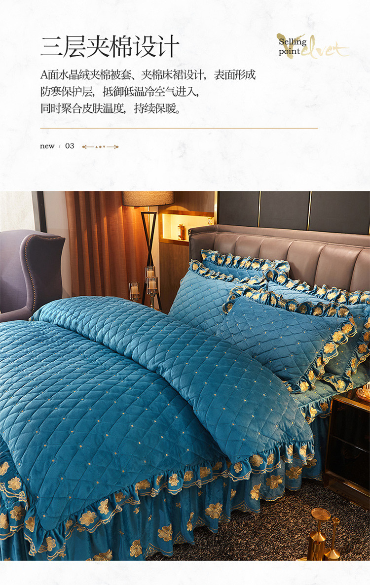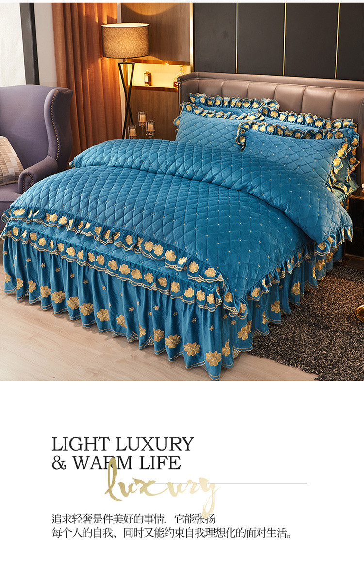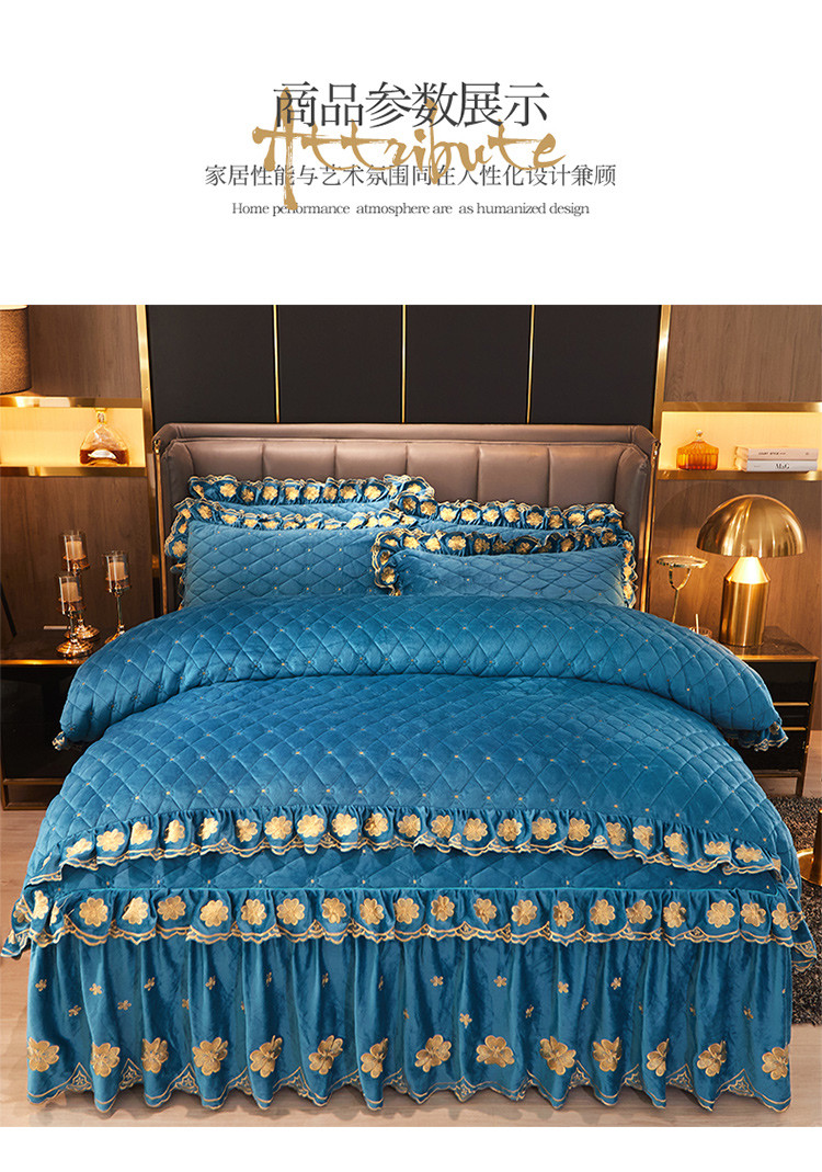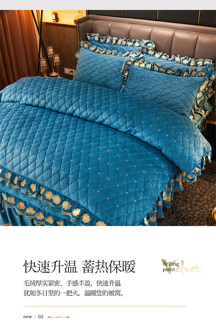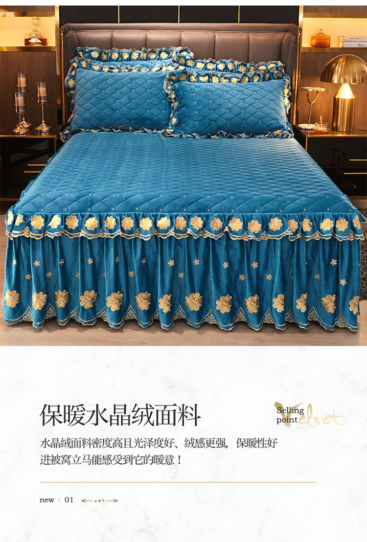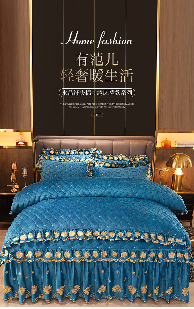 (总)恒爱 2022秋冬水晶绒翩翩花舞夹棉床裙四件套,大红色,豆沙红,橄榄绿,公主粉,桔色,咖啡色,孔雀绿,拉菲红,罗兰紫,玫红色,美人玉,米白色,米驼色,抹茶绿,浅灰色,紫色