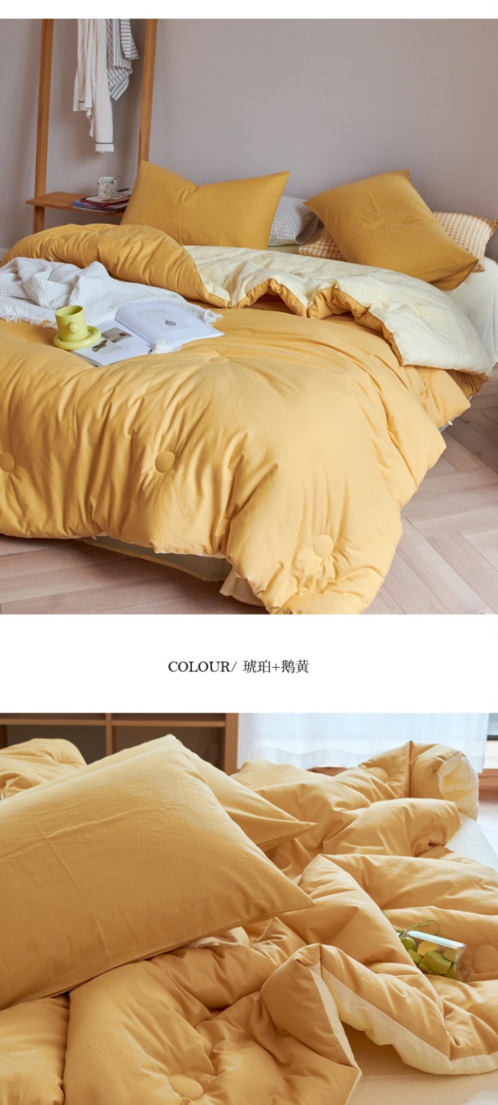 北欧风ins纯棉水洗棉床四件套全棉简约被套床单上三件套床笠,白色+藏青,藏青+浅蓝,鹅黄+螺旋藻绿,鹅黄+牛油果,螺旋藻绿+鹅黄,千夏紫+水貂灰,千夏紫+薇薇紫,薇薇紫+浅灰,浅蓝+鹅黄,浅蓝+白色,浅蓝+藏青