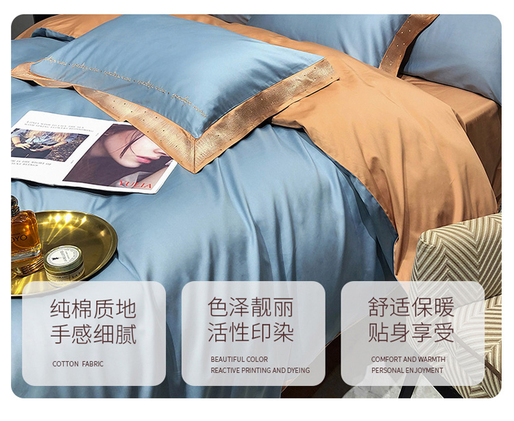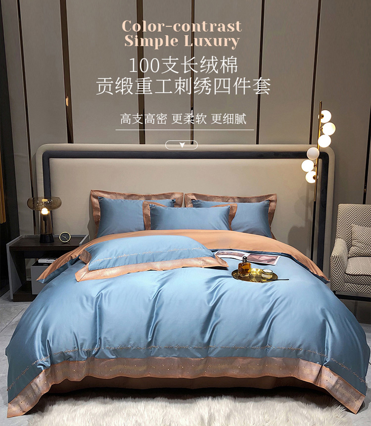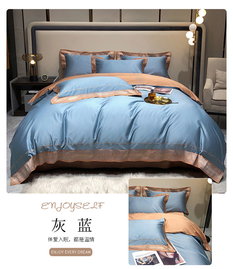 商品名称:爱缦 2021新款星空系列100支长绒棉奥棉四件套 灰蓝
