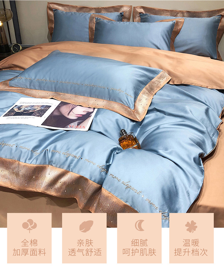 (总)爱缦 新款60支莱赛尔四件套-至真系列,蓝米驼,米白粉,浅紫,玉粉