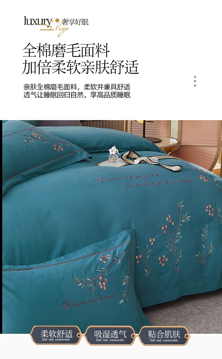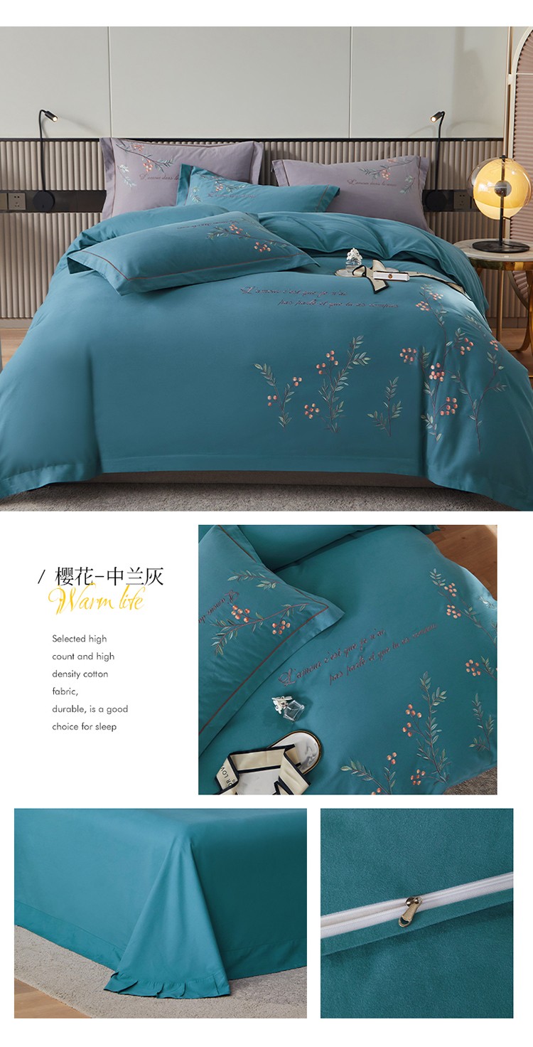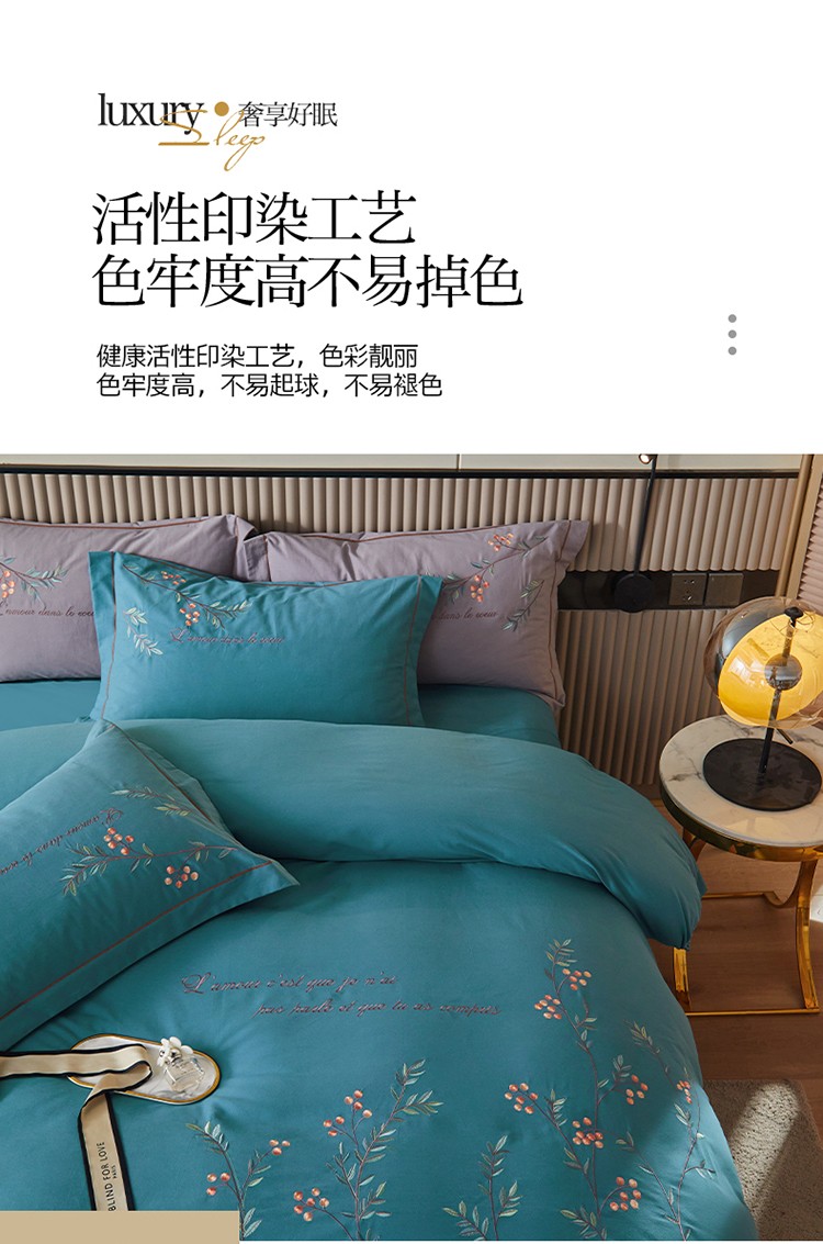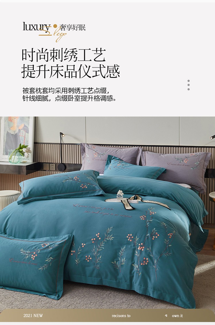 (总)惠居家 2023新款 13376全棉刺绣四件套 兰亭系列,牛果绿,豆沙,高级灰,桔色,森林绿,天空蓝,温馨紫