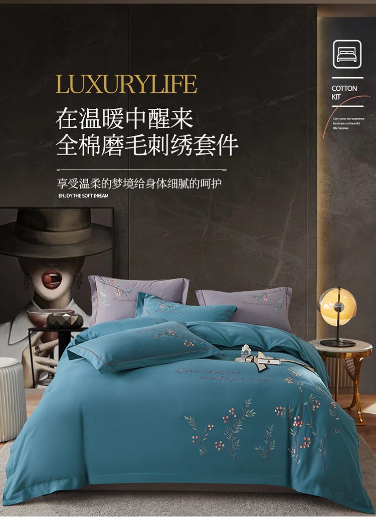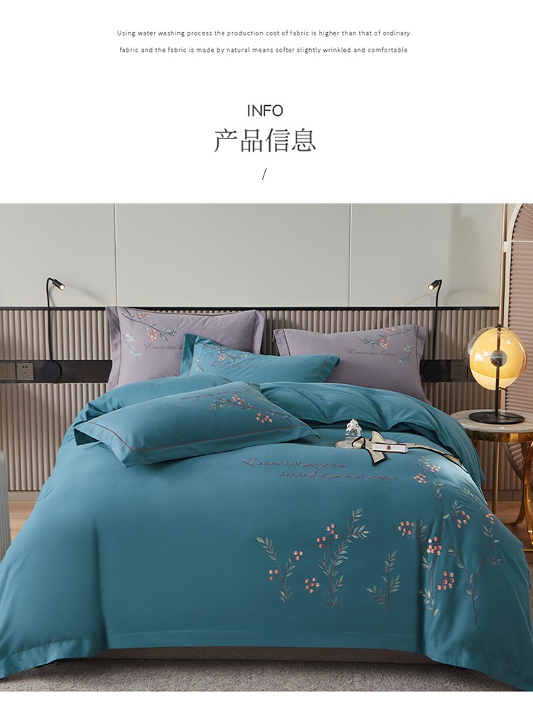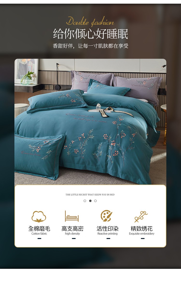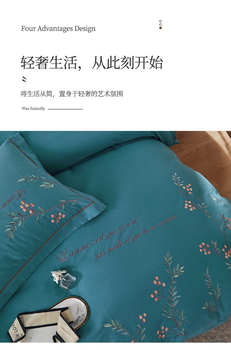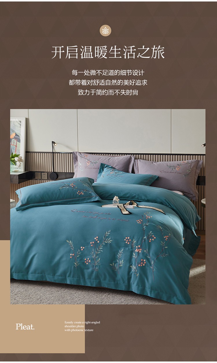 (总)惠居家 2023新款 13376全棉刺绣四件套 兰亭系列,牛果绿,豆沙,高级灰,桔色,森林绿,天空蓝,温馨紫