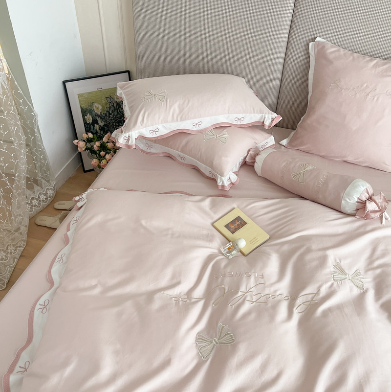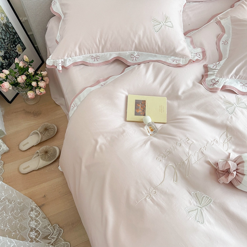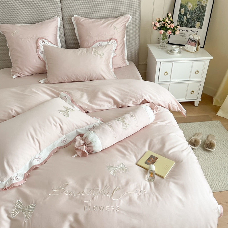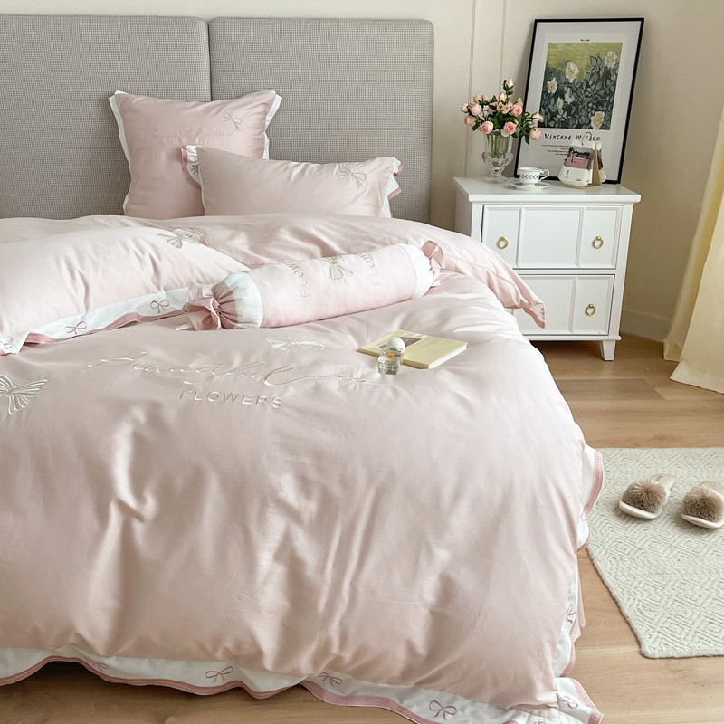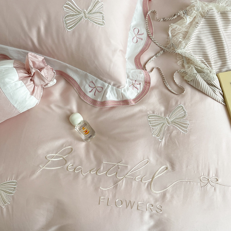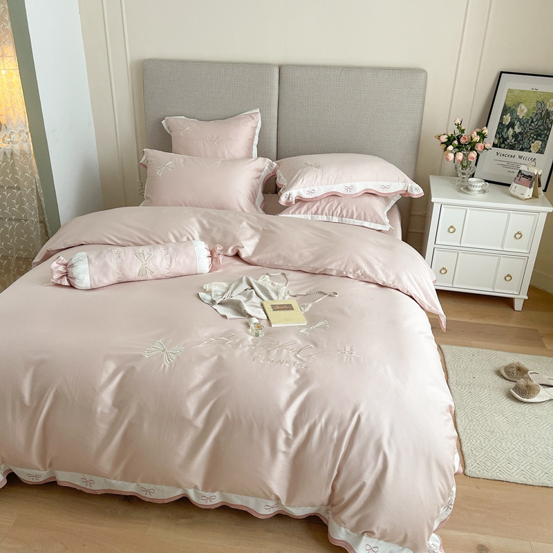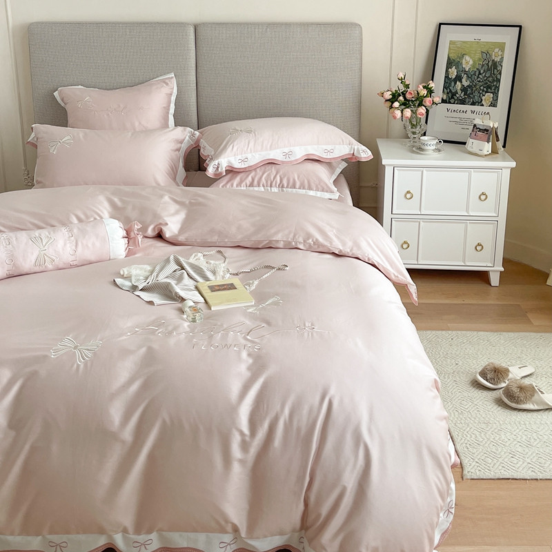 商品名称:柚子 2021新款高端100支澳棉贡缎刺绣四件套 樱柠-粉
