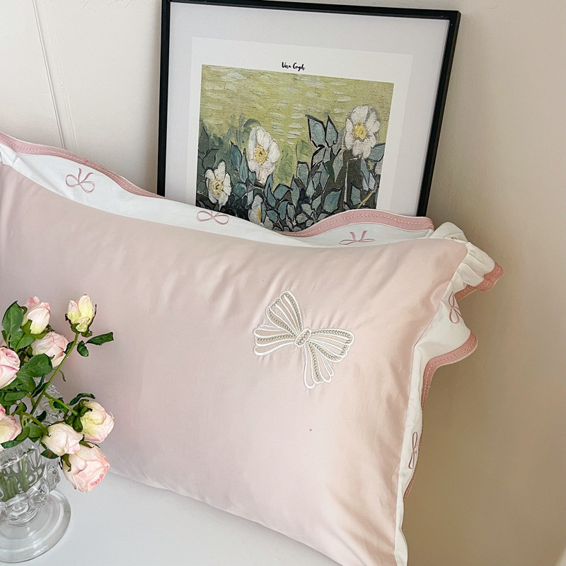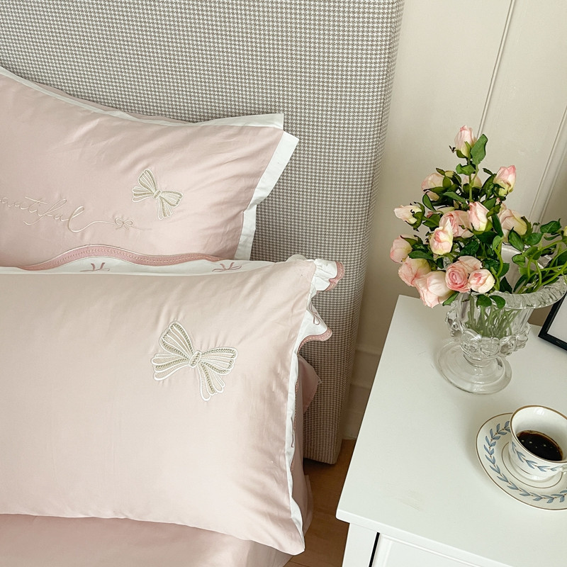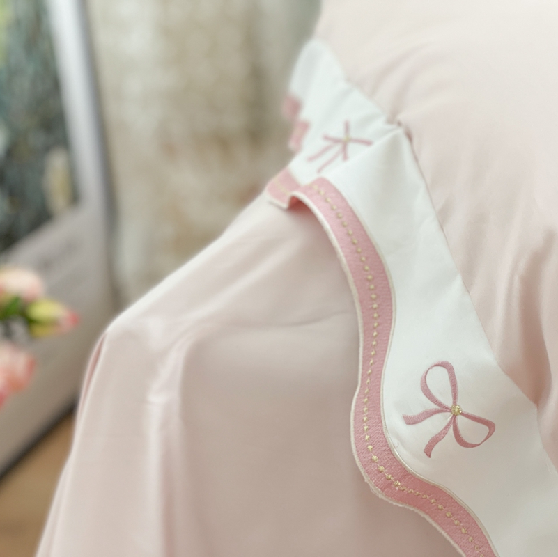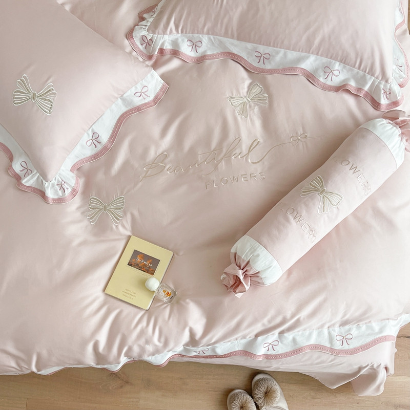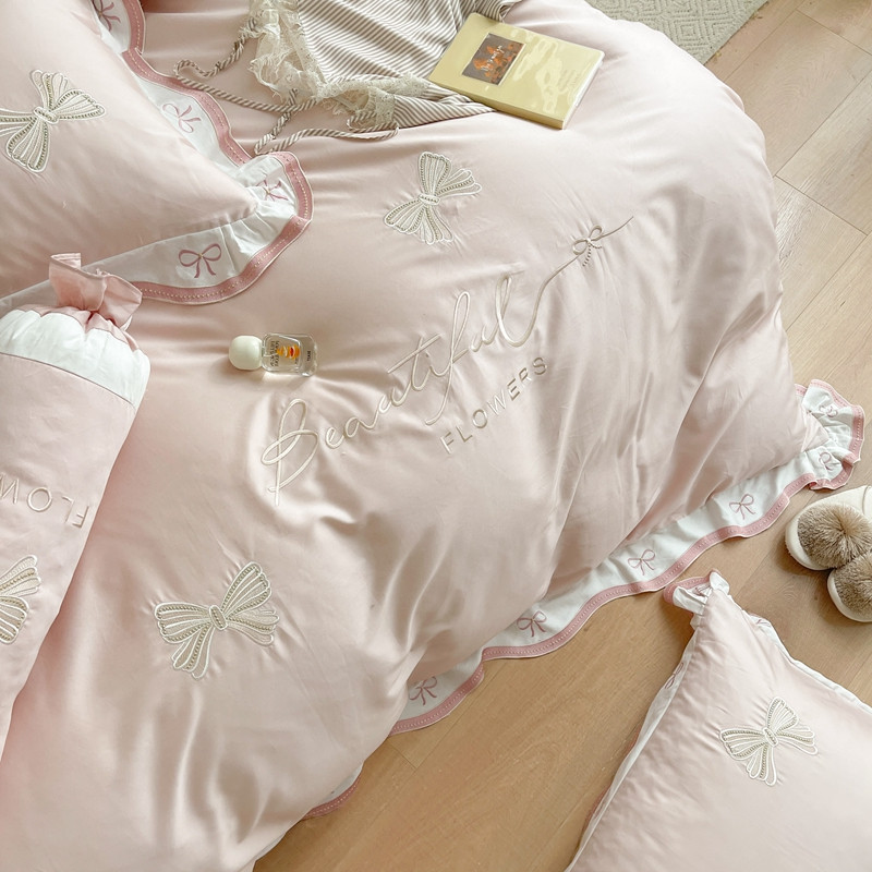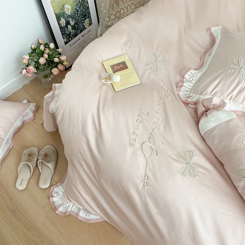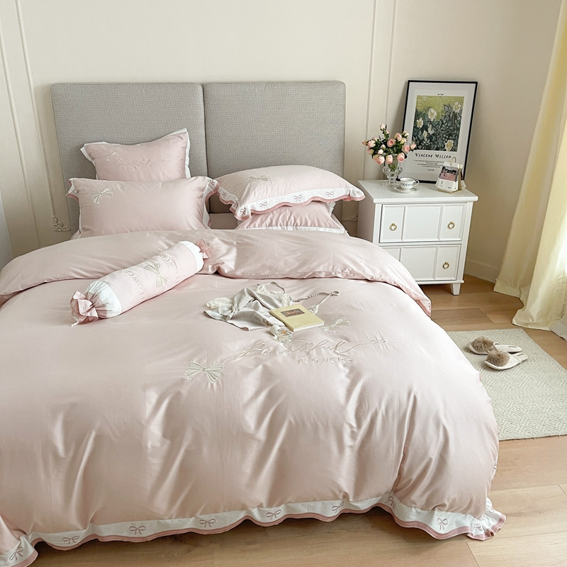 商品名称:柚子 2021新款高端100支澳棉贡缎刺绣四件套 樱柠-粉