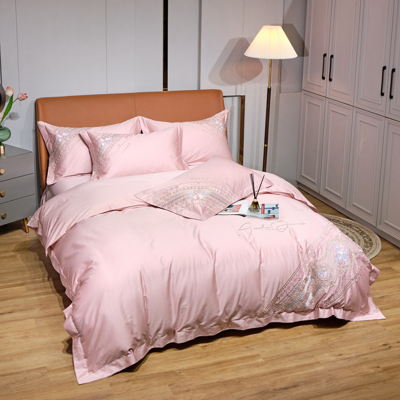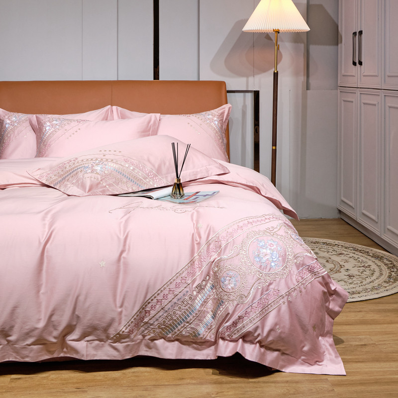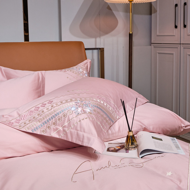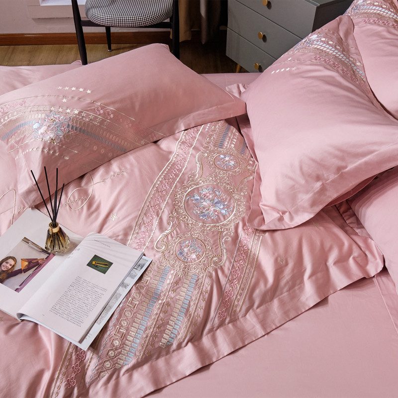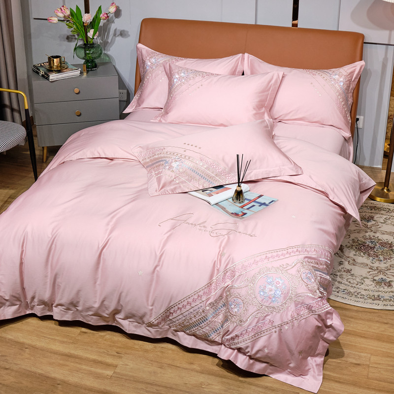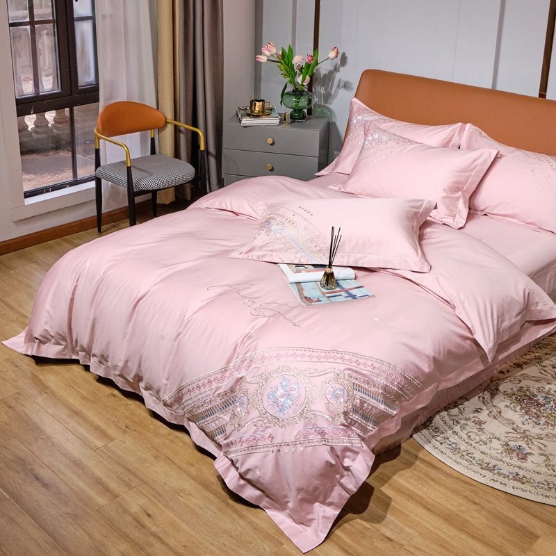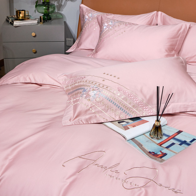 商品名称:星尚 2021新款秋冬100支长绒棉四件套-楼兰花语 粉玉