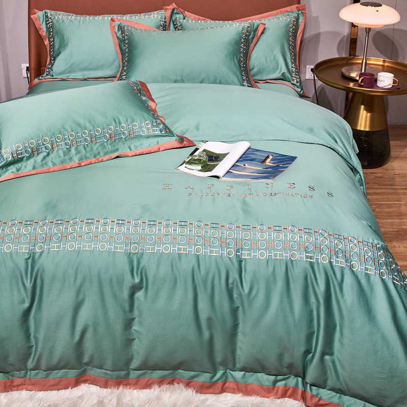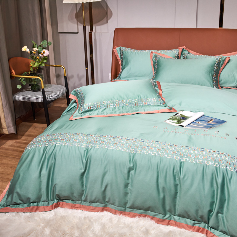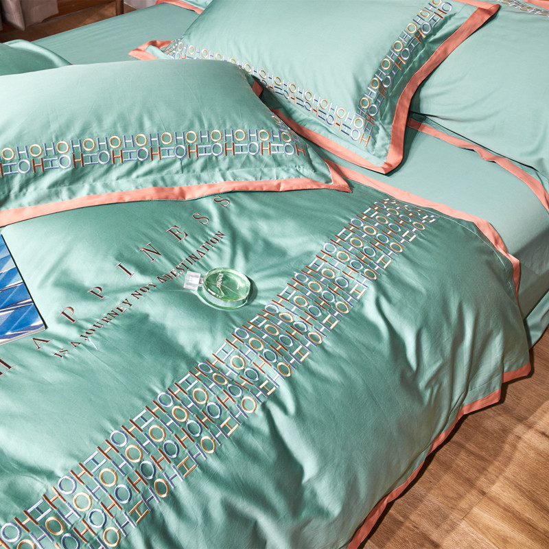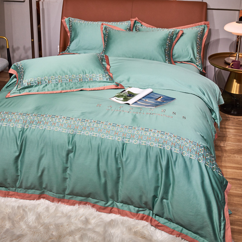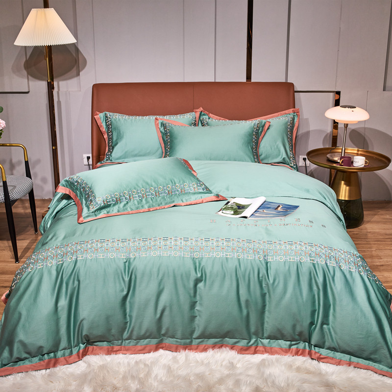 星尚 2021新款秋冬100支长绒棉四件套-欧尔 绿色