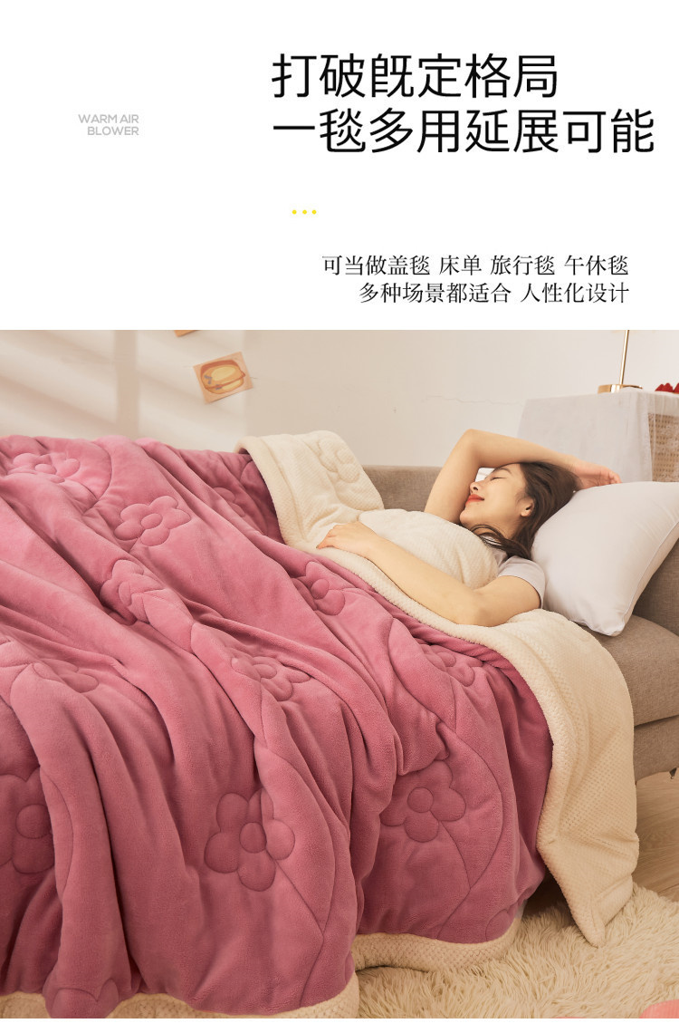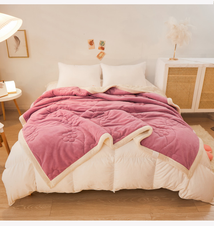 苏拉家居 2023新款牛奶绒贝贝绒夹棉毛毯绗绣毯薄被子 豆沙红