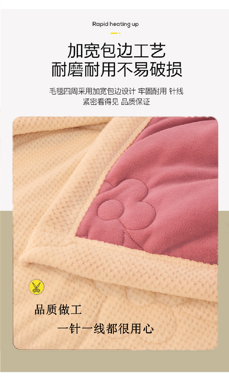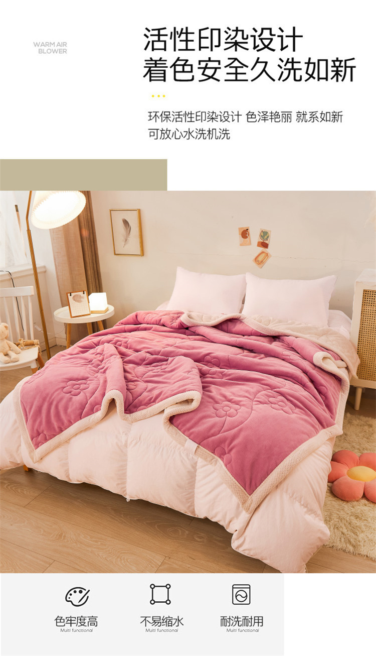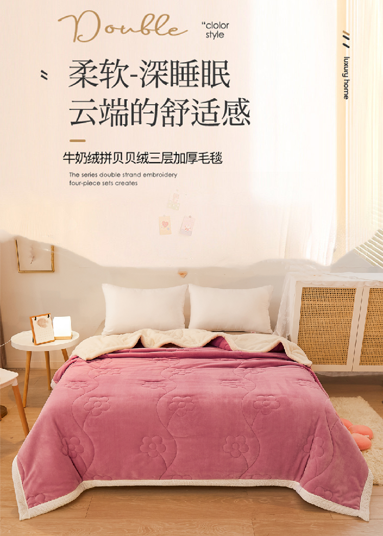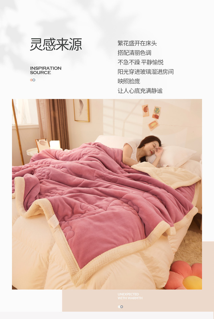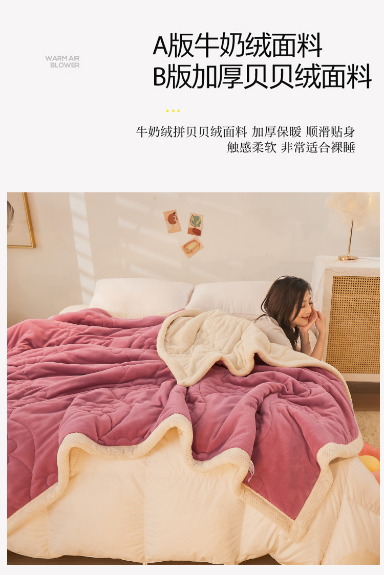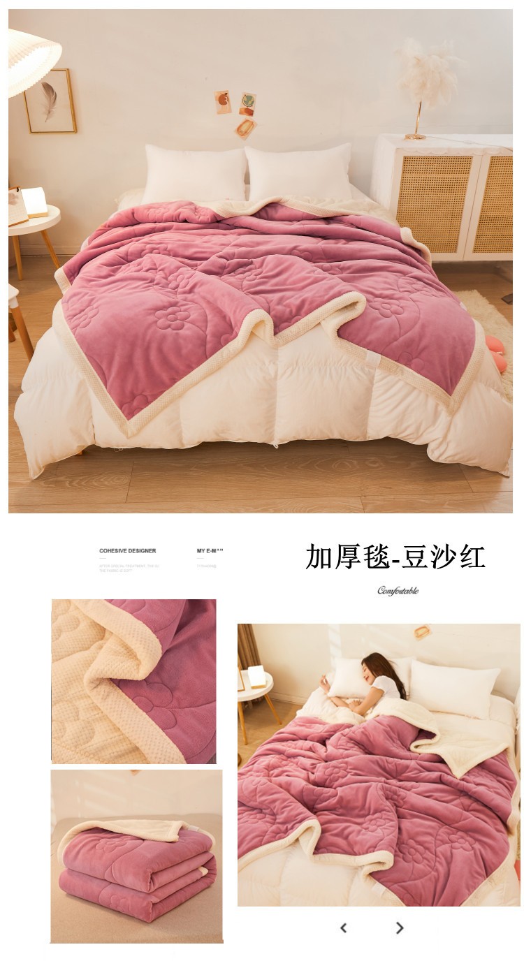 商品名称:苏拉家居 2023新款牛奶绒贝贝绒夹棉毛毯绗绣毯薄被子 豆沙红