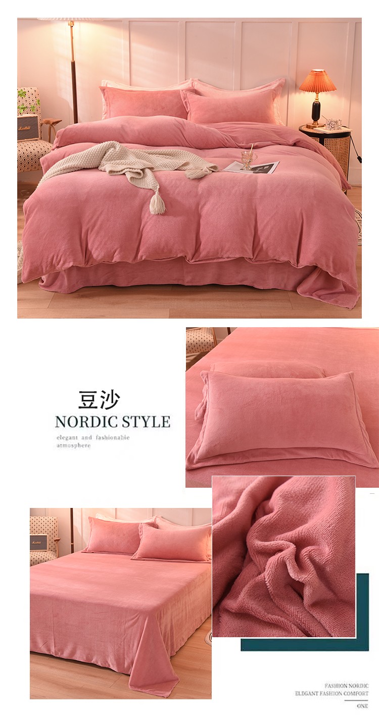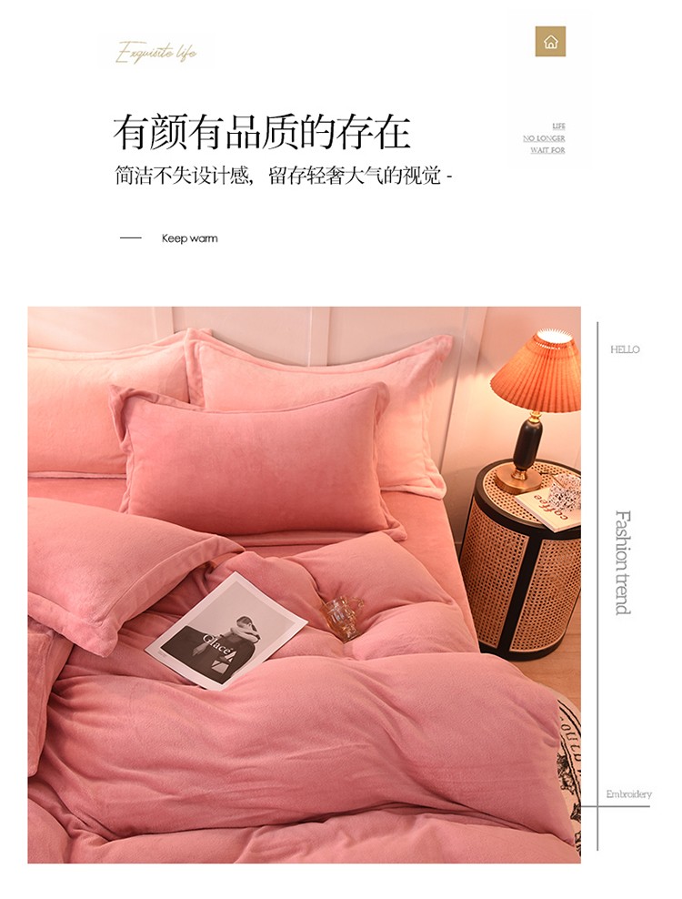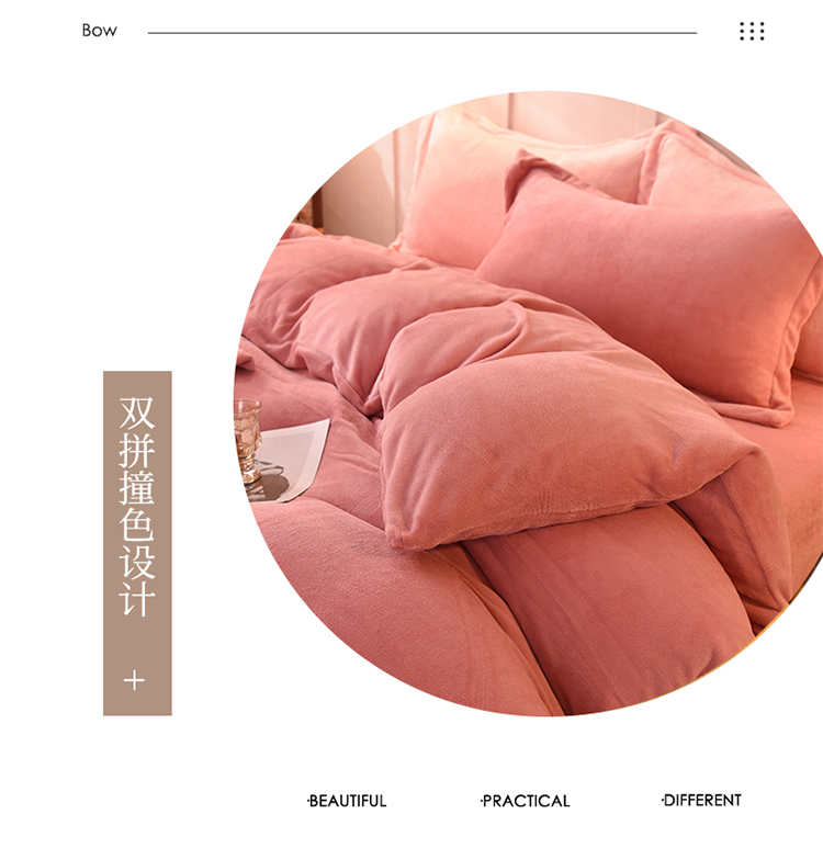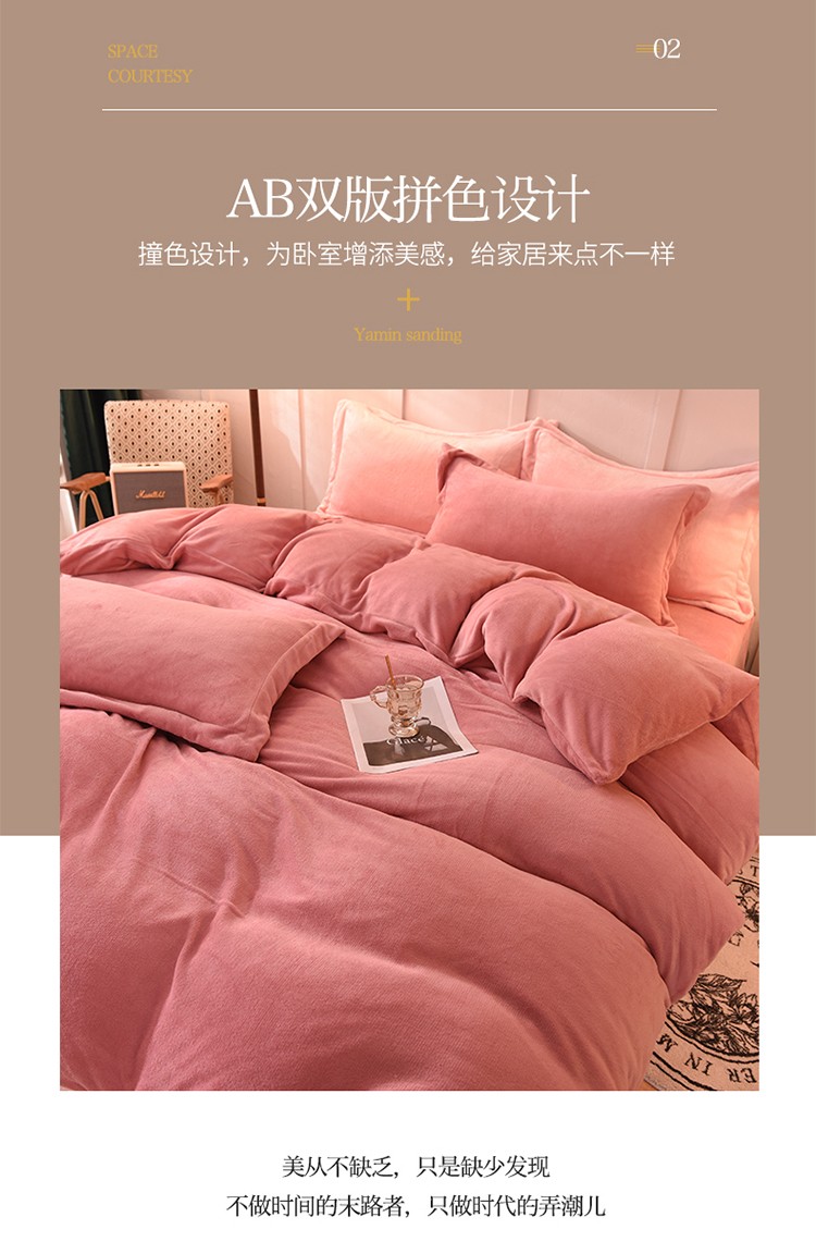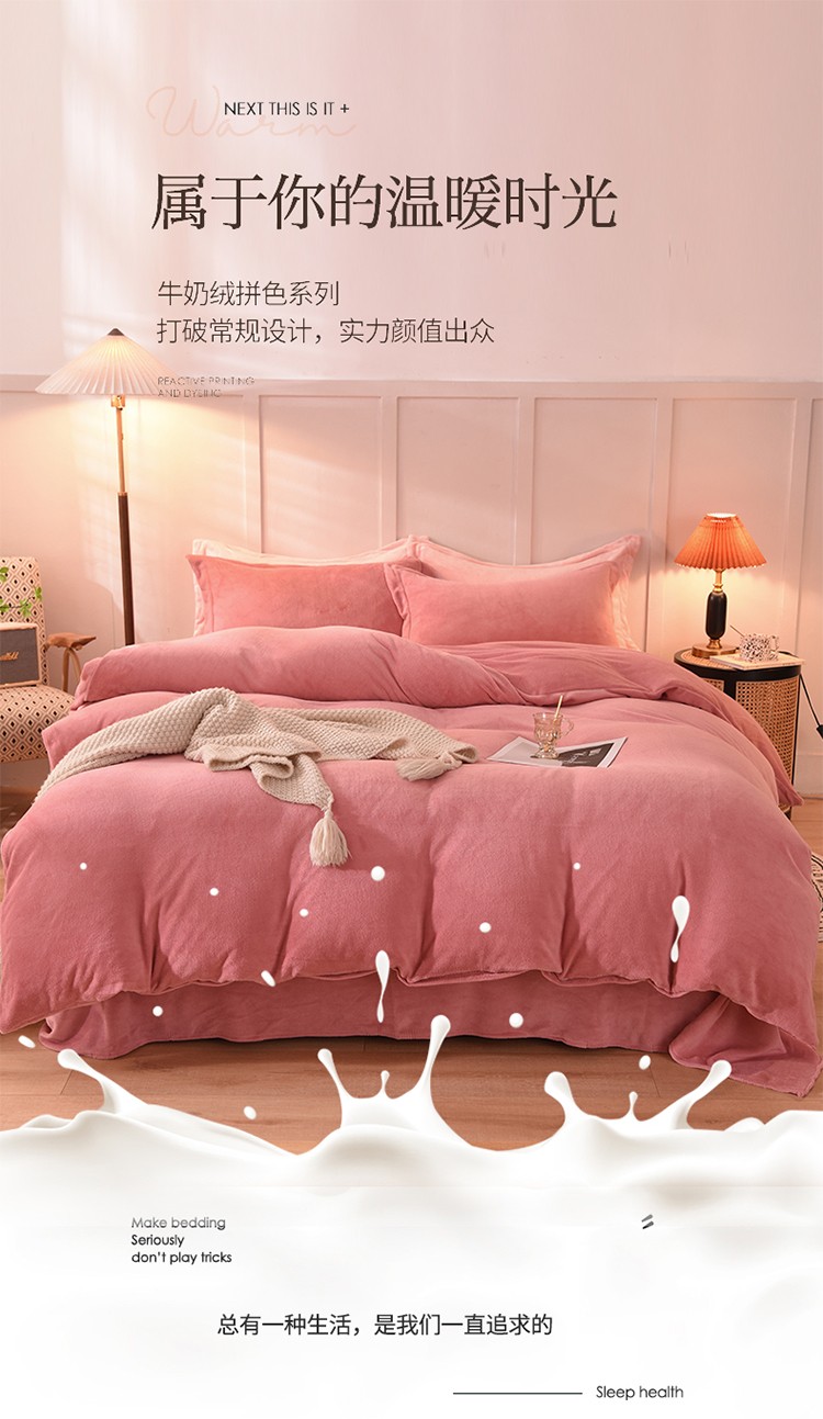当前位置: 91家纺网 > 商品网购 > 床品套件 > 四件套 > 牛奶绒四件套 > 艾米家居 2021新款纯色拼色牛奶绒系列四件套 豆沙
