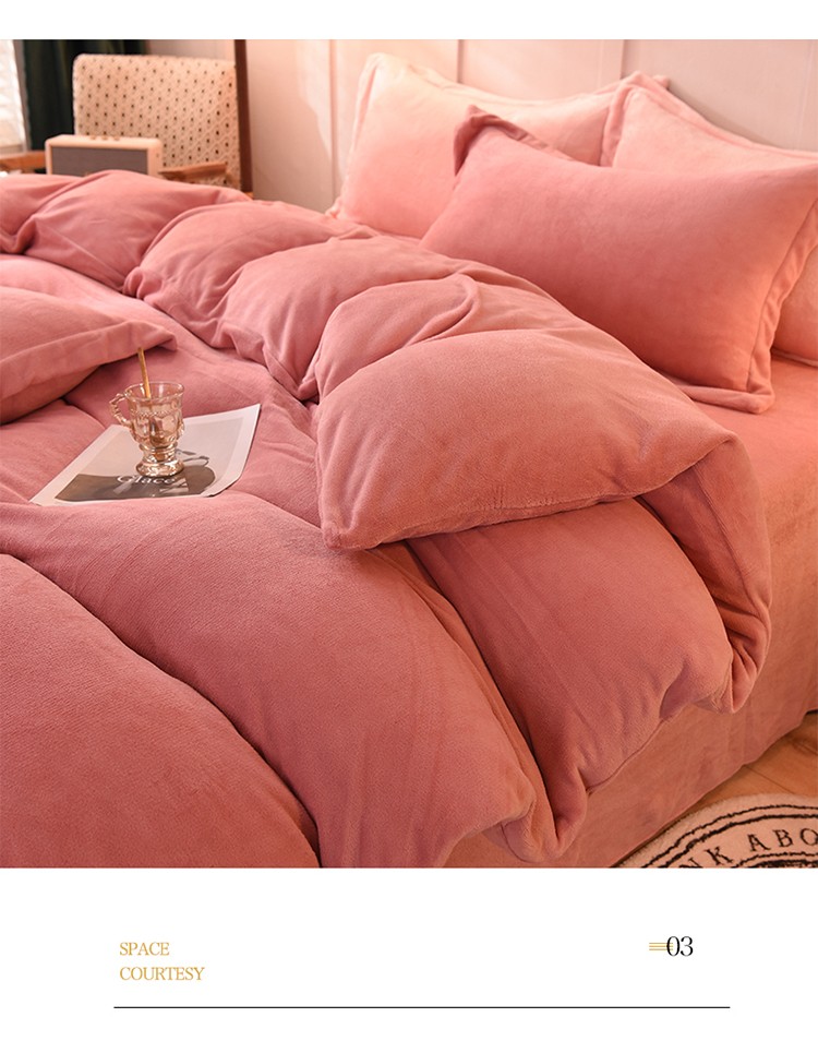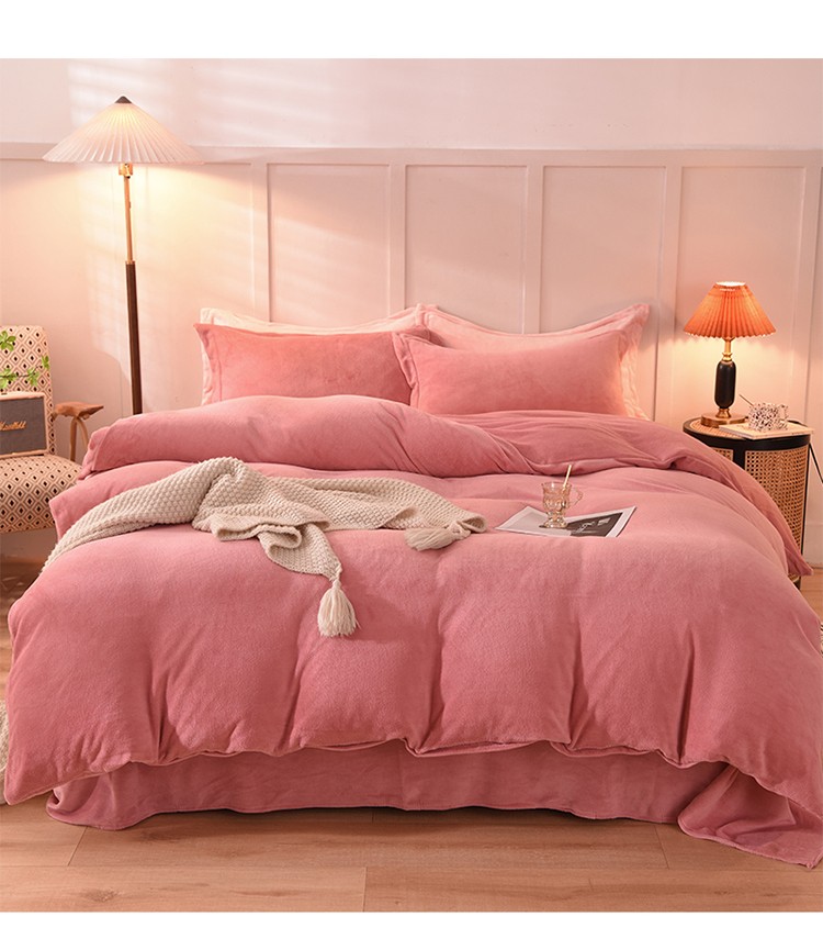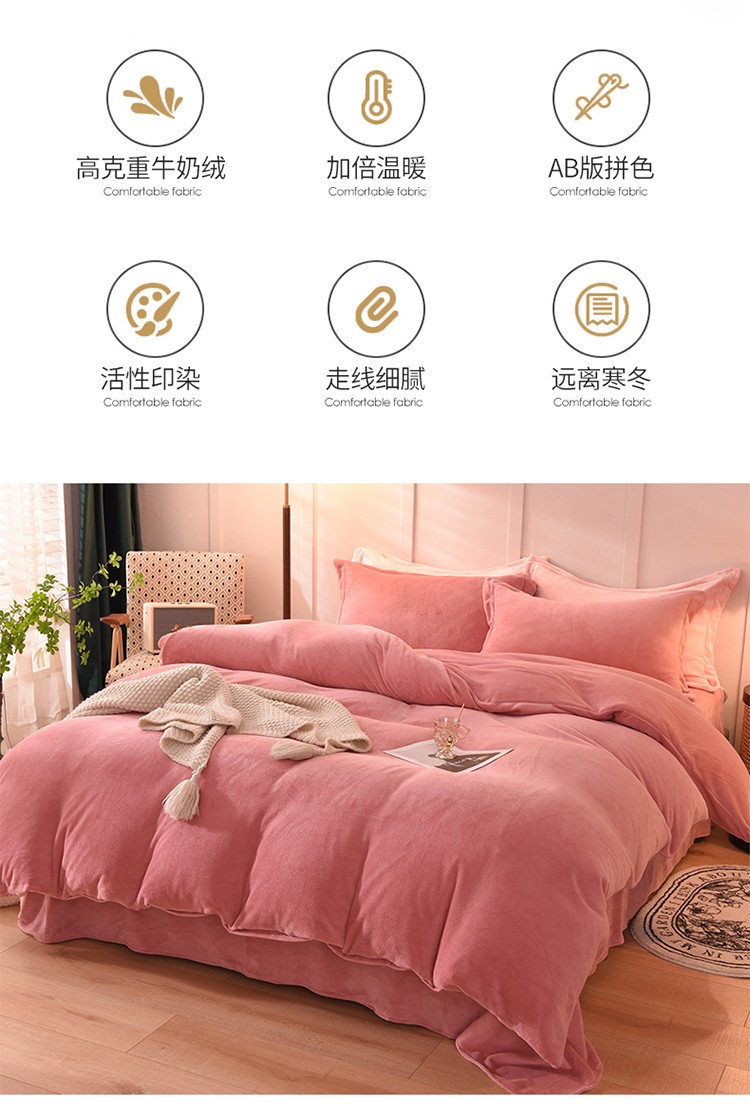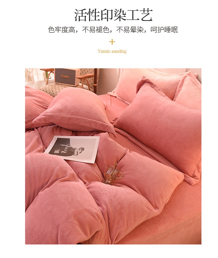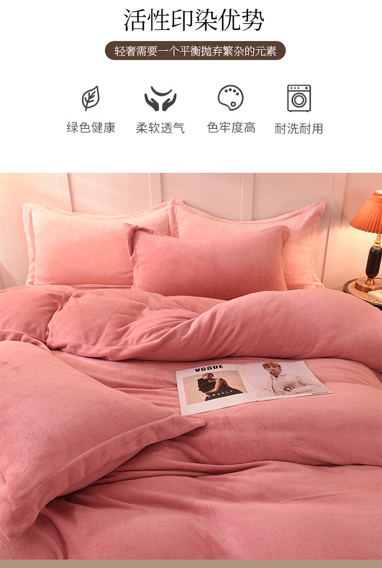当前位置: 91家纺网 > 商品网购 > 床品套件 > 四件套 > 牛奶绒四件套 > 艾米家居 2021新款纯色拼色牛奶绒系列四件套 豆沙