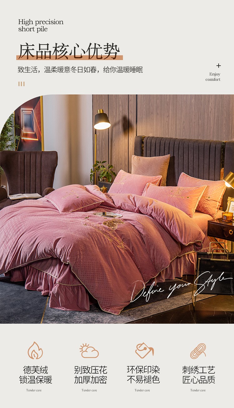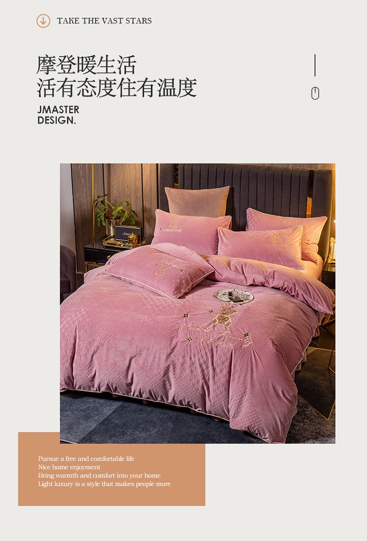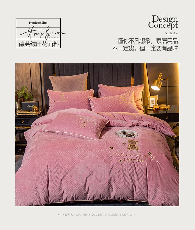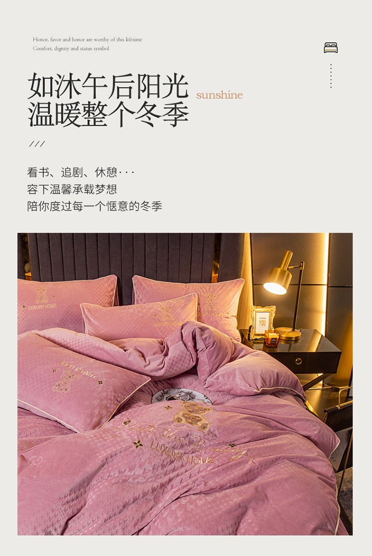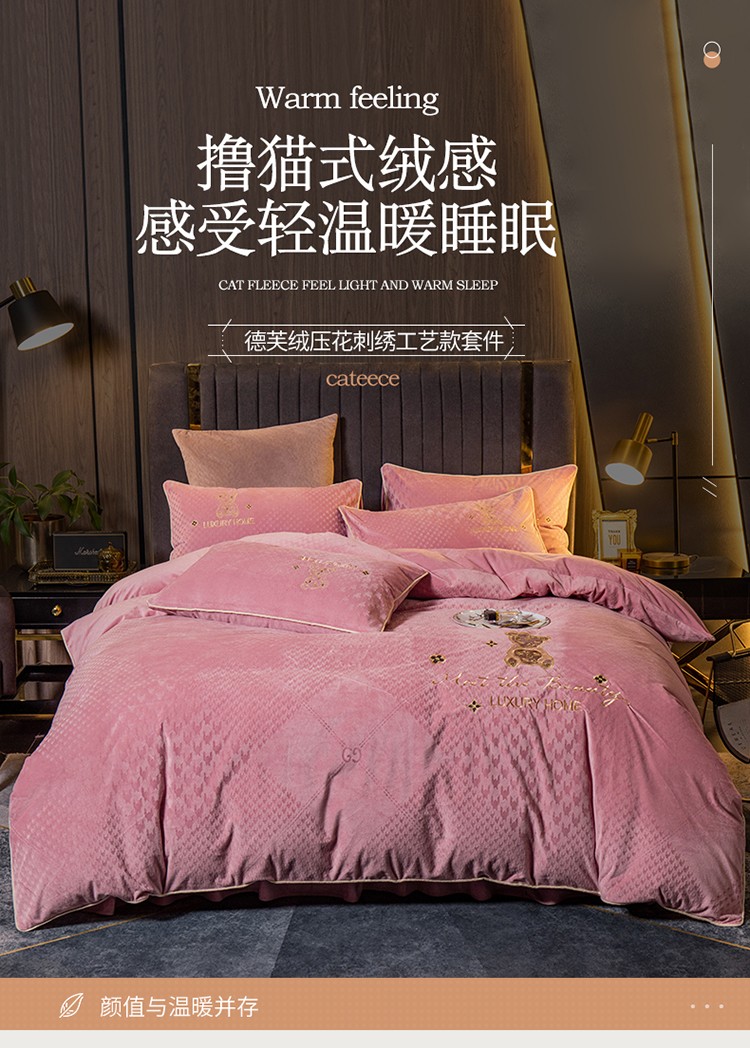 商品名称:(总)莎臣豹 2025新款高档刺绣德芙绒牛奶绒四件套
