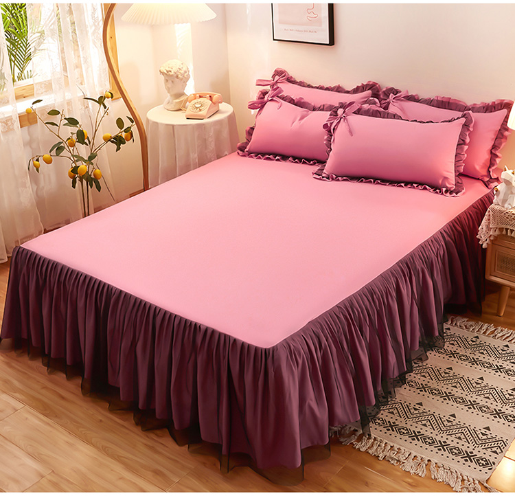 莉莉安家纺 2025新款悦色系列纯色磨毛单床裙 豆沙