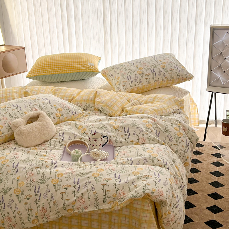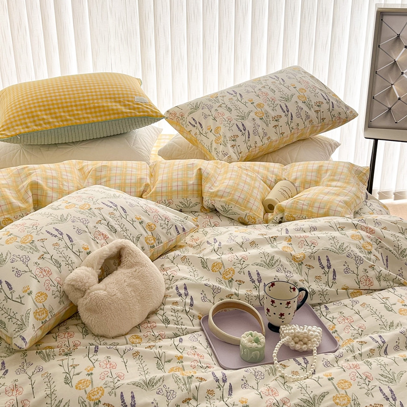 昔可家纺 2022新款13372全棉普通款花花系列四件套 彩绘花