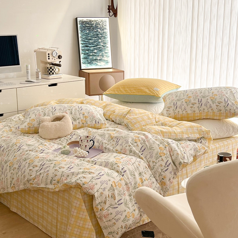 (总)昔可 2023新款全棉ins格子混搭系列四件套,ins简约绿格,粉蓝格,开心果格,学院格纹,粉绿格,海盐兰格,黄绿格,夏日蓝条,芝士黄条,紫芋泥芝士格