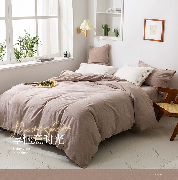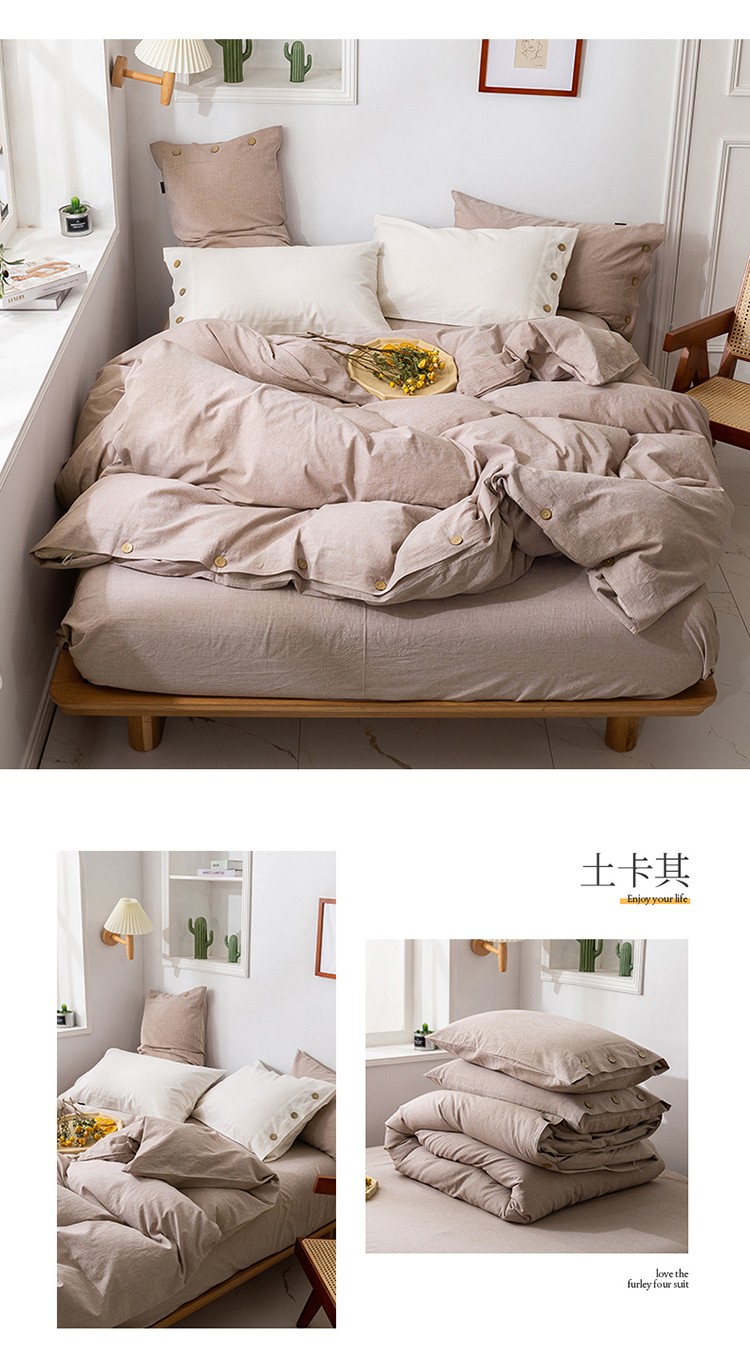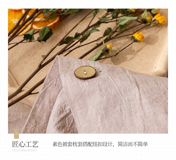 简家居 2022新款15%亚麻85%棉四件套 土卡其