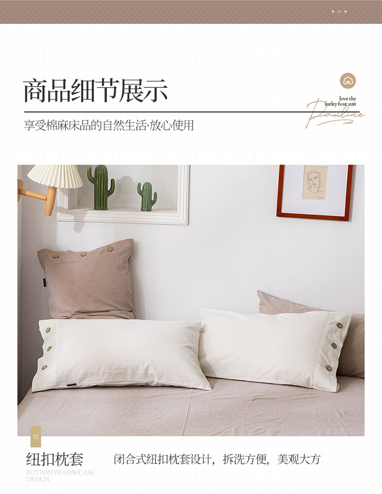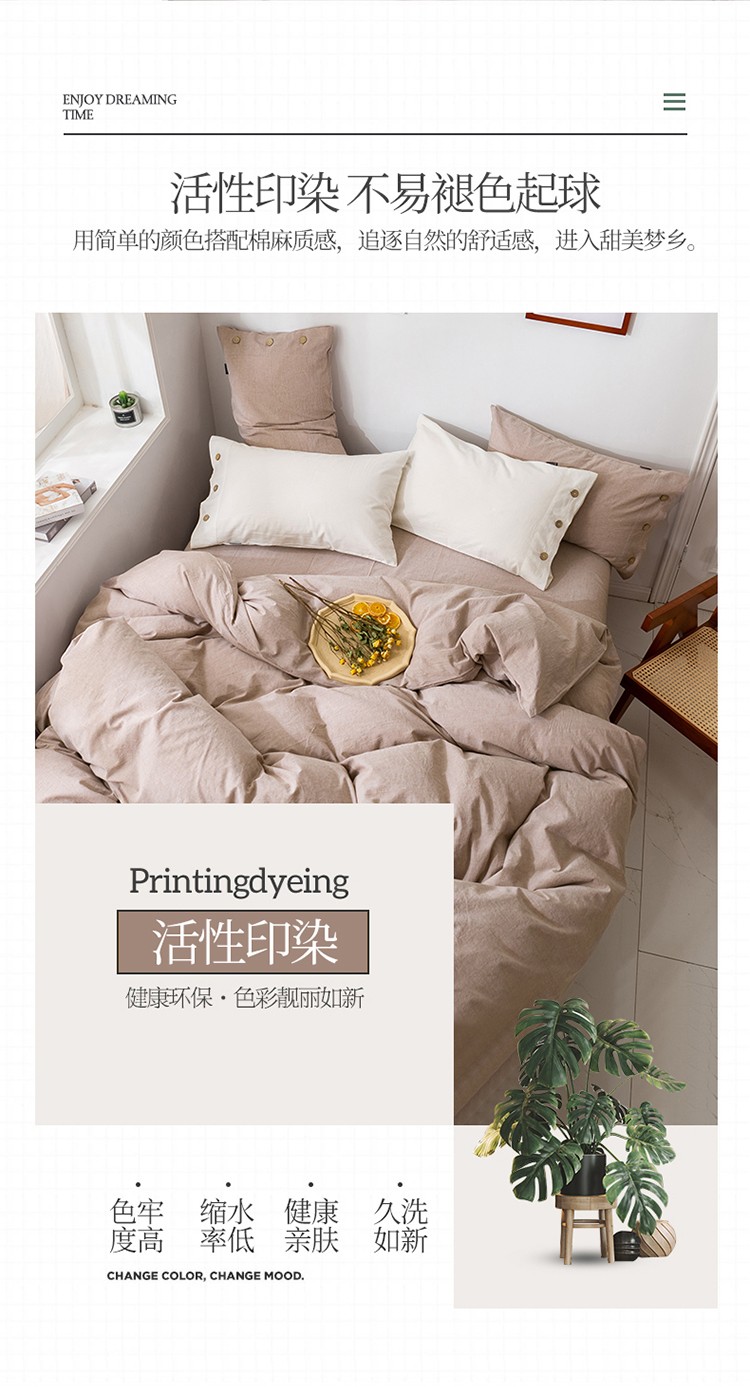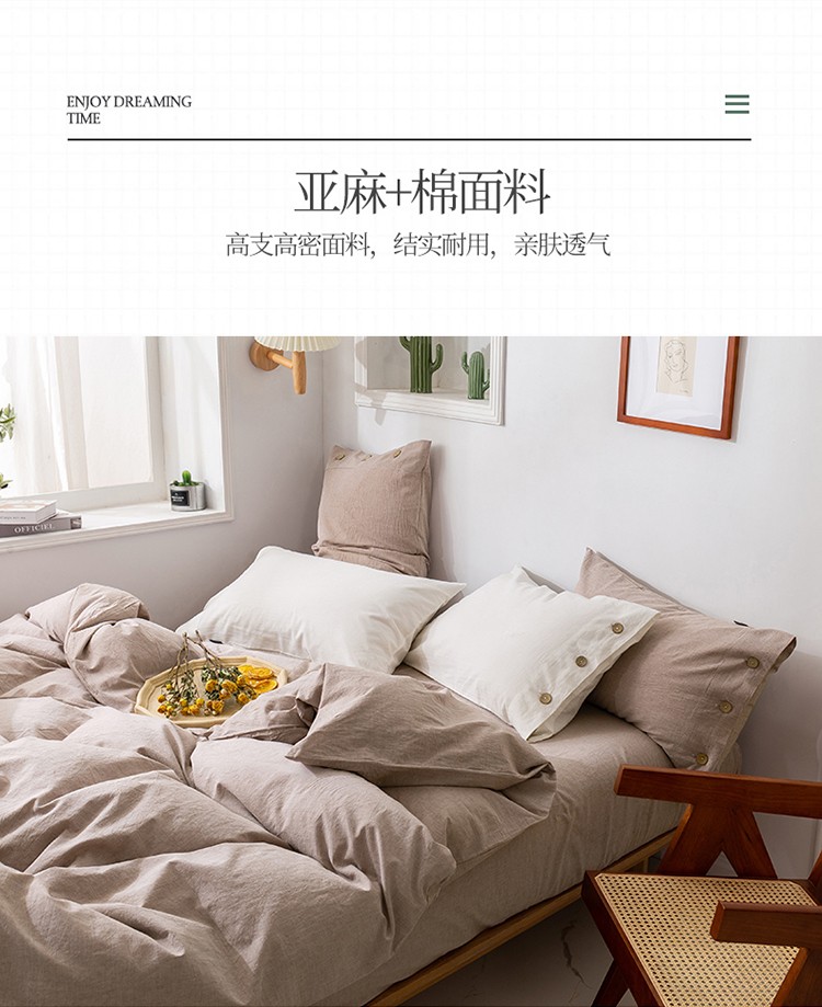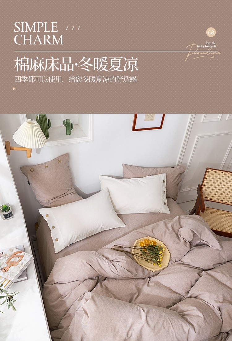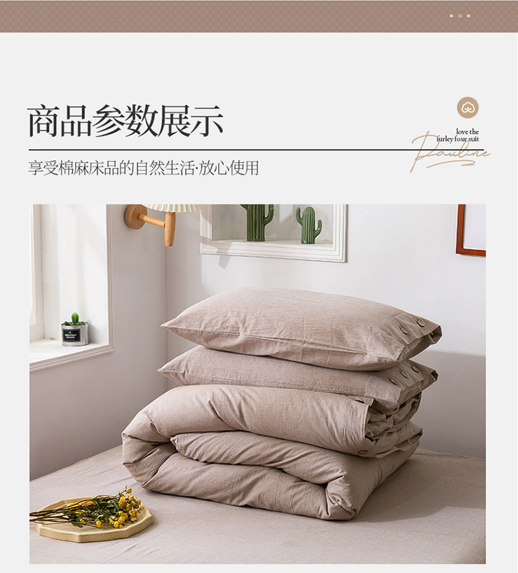 商品名称:简家居 2022新款15%亚麻85%棉四件套 土卡其
