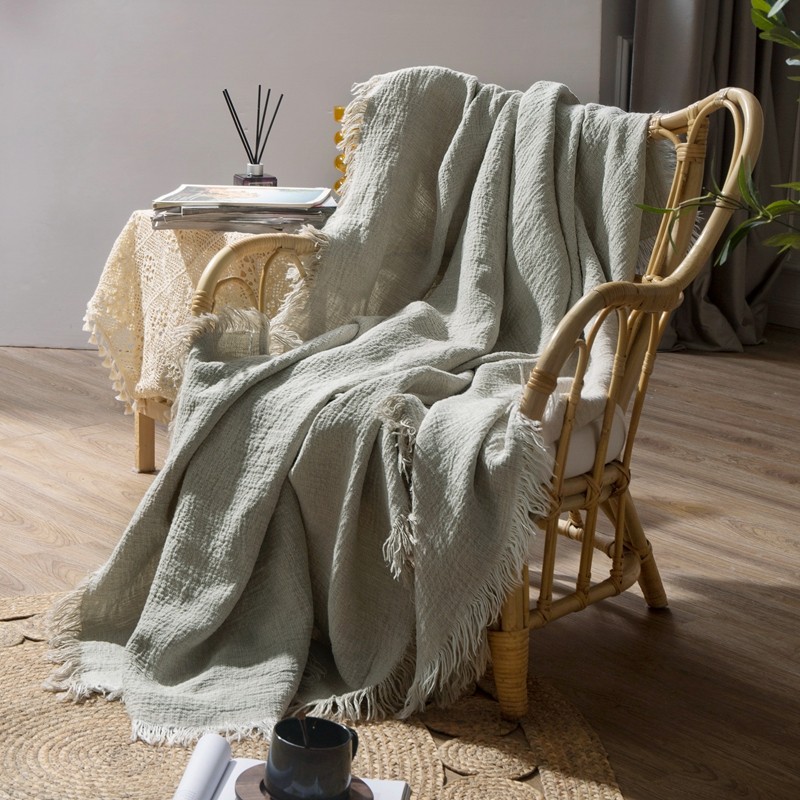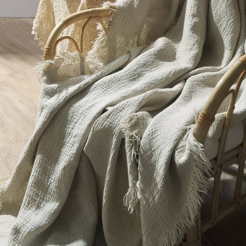 商品名称:简家居 2022新款纯亚麻流苏盖毯 麻本色