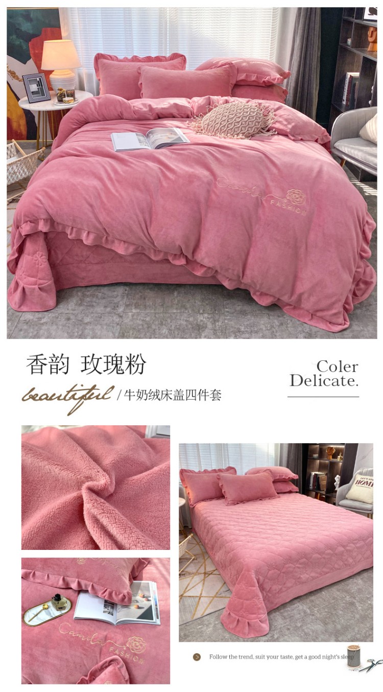 (总)星尚家纺 2024新款加厚保暖全消光牛奶绒夹棉床裙四件套-玫瑰之恋,粉玉,寐紫,浅蓝,水绿