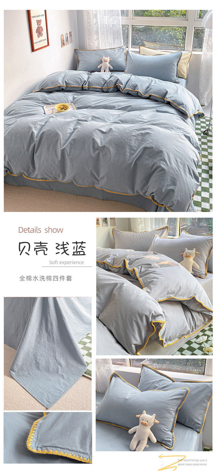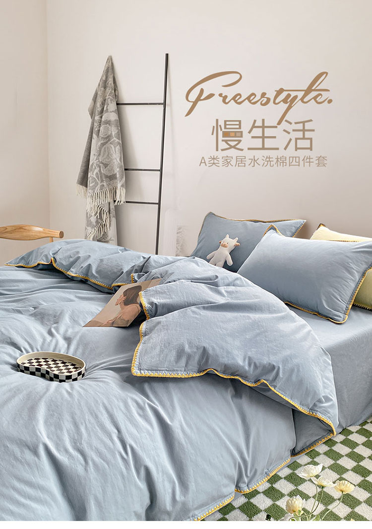 当前位置: 91家纺网 > 商品网购 > 床品套件 > 四件套 > 水洗棉四件套 > 泽西家纺 2022新款A类全棉水洗棉四件套 贝壳—浅蓝