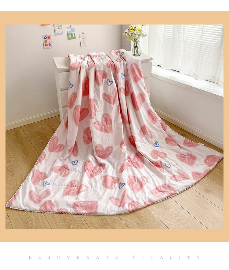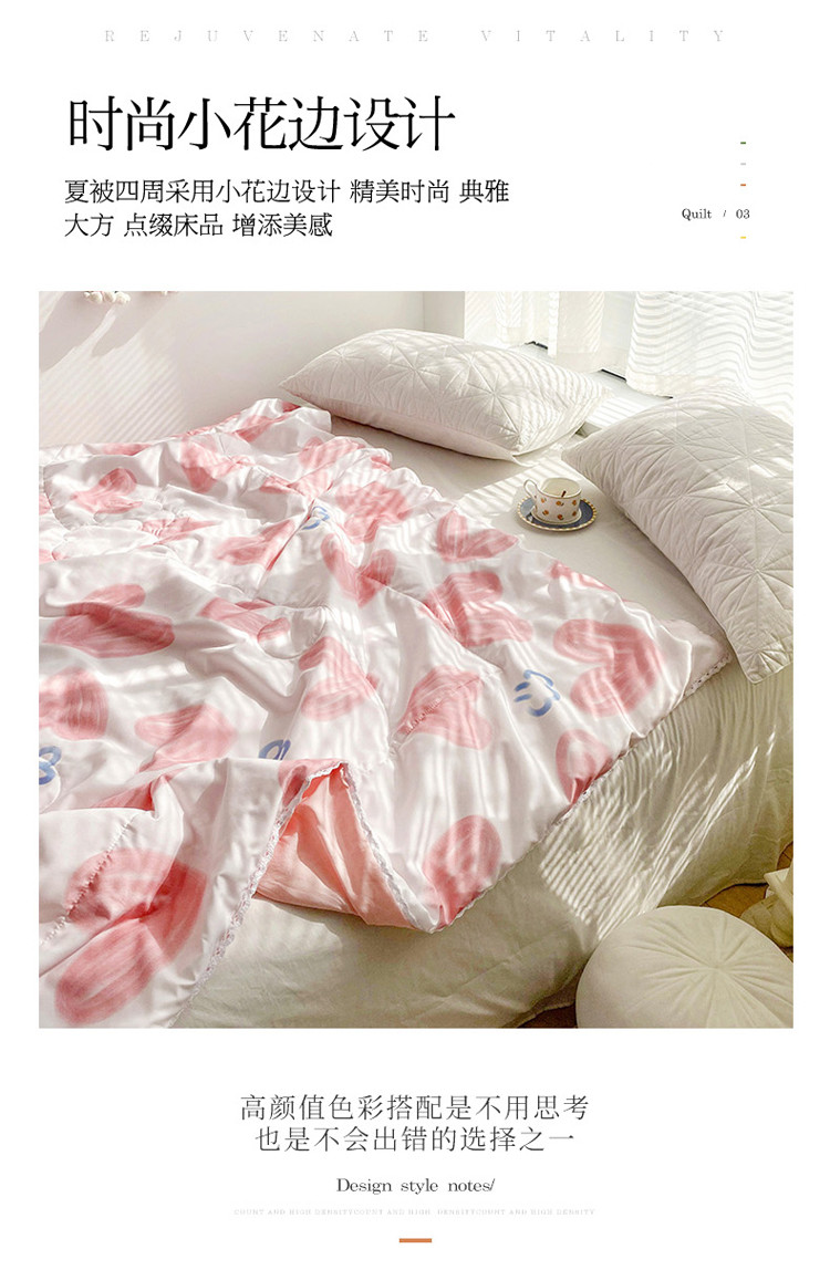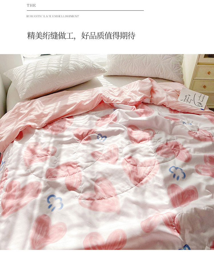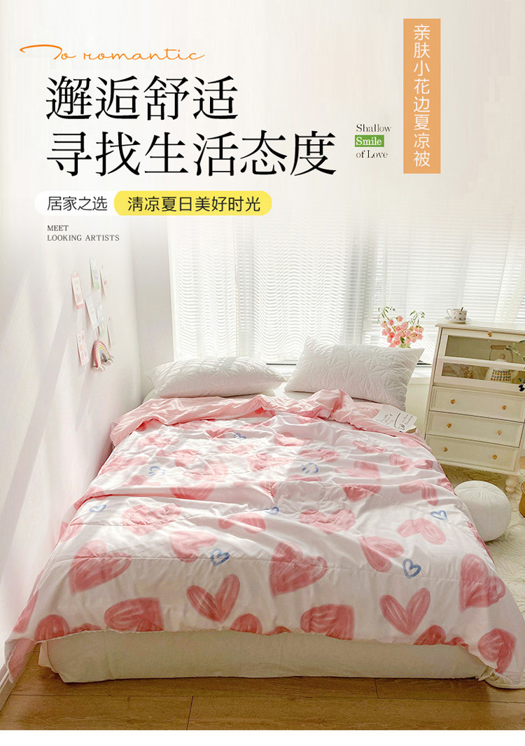 商品名称:寐居 2022新款亲肤小花边水洗棉单夏被 粉爱心