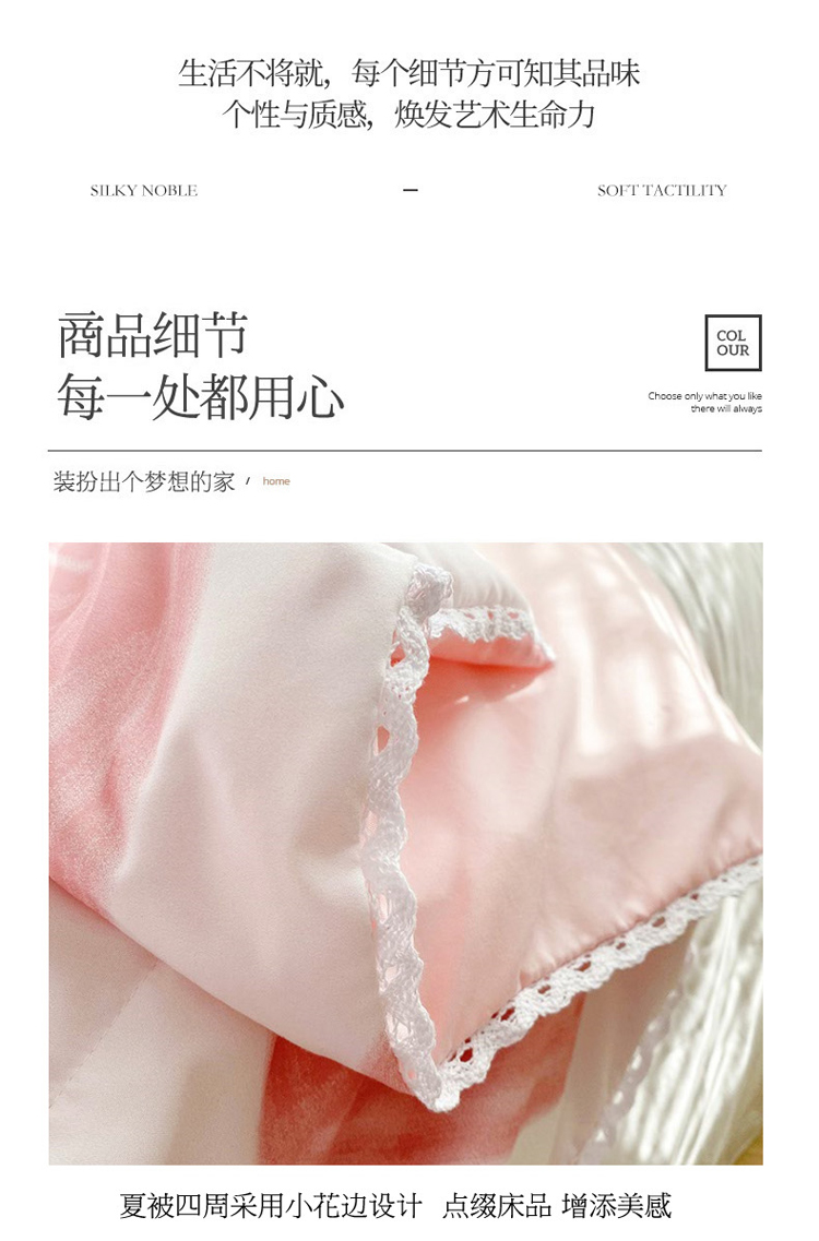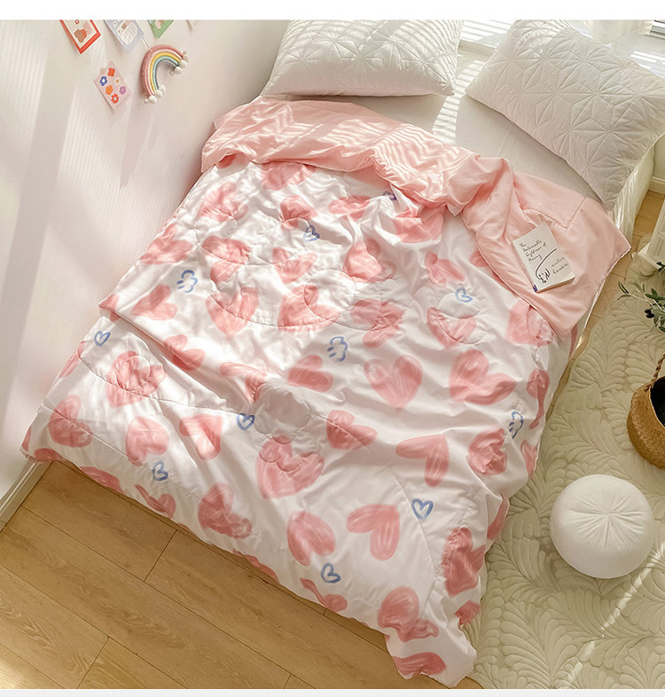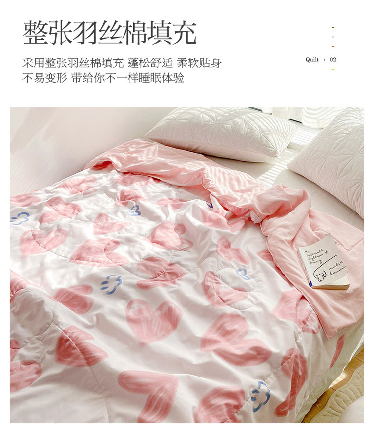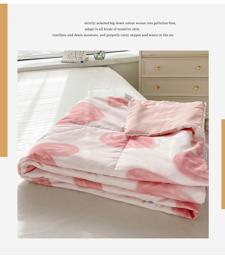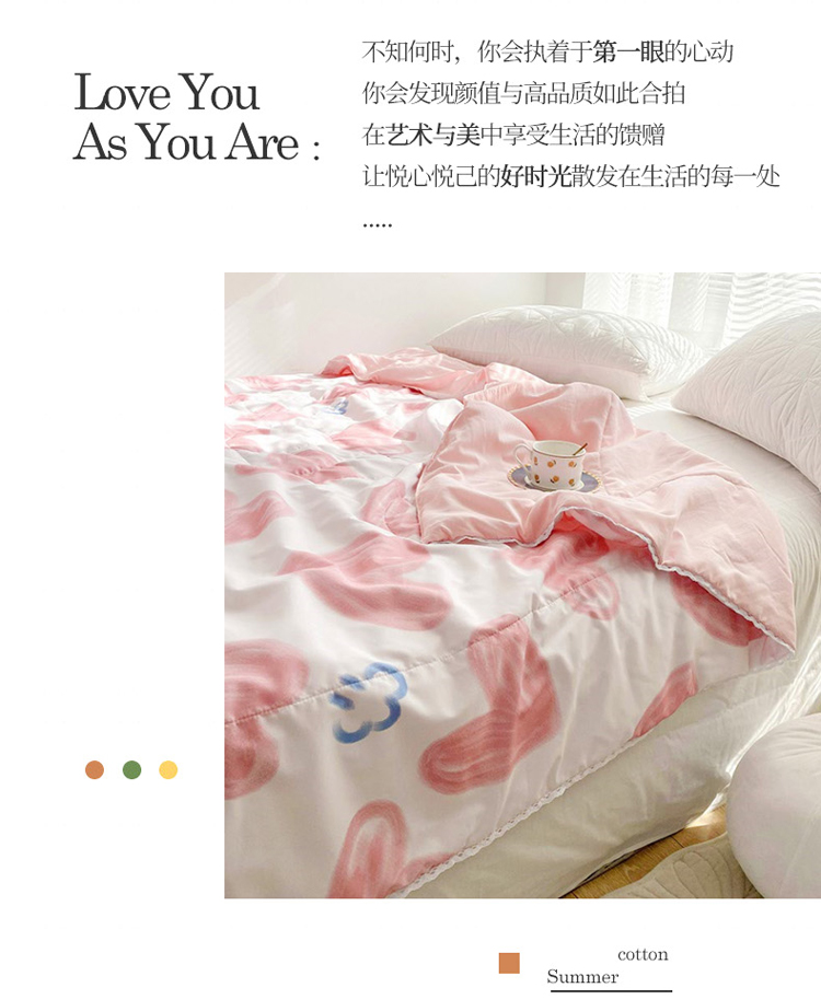 商品名称:寐居 2022新款亲肤小花边水洗棉单夏被 粉爱心