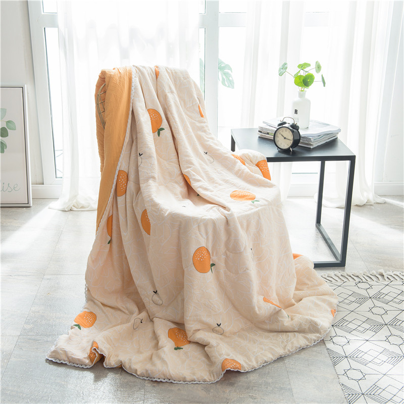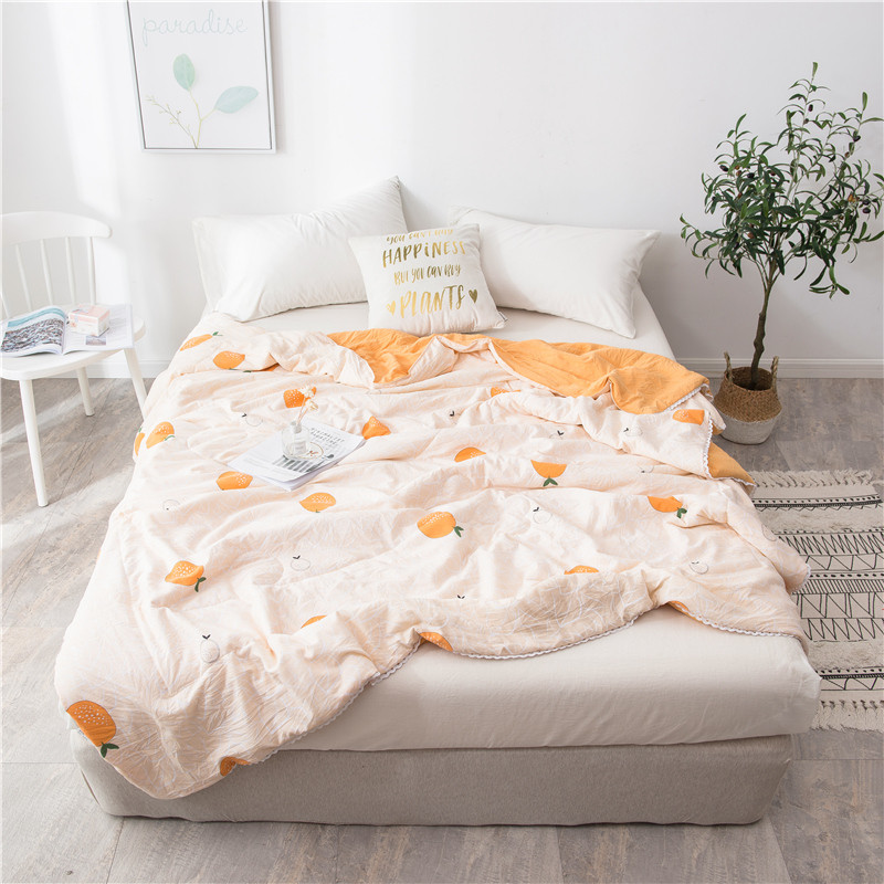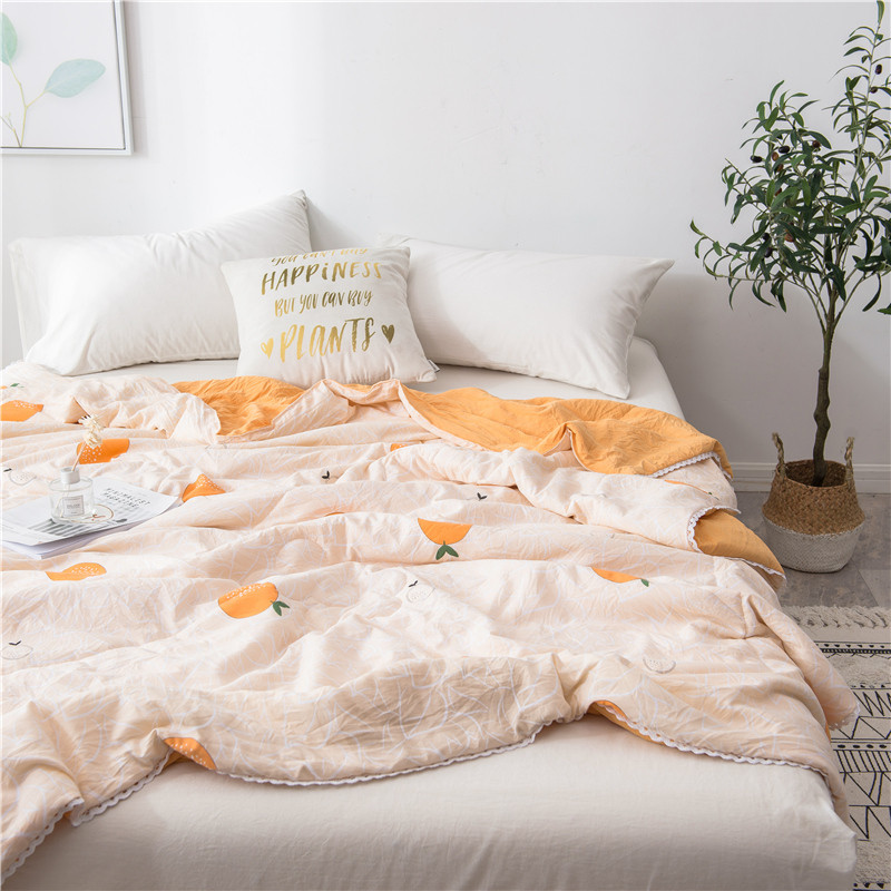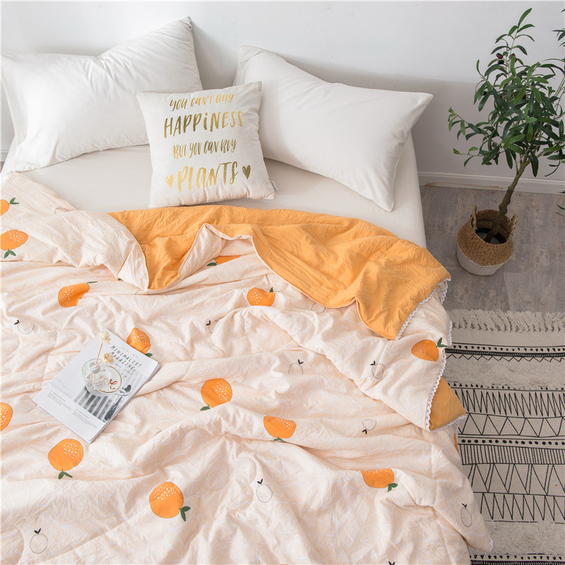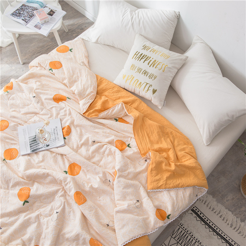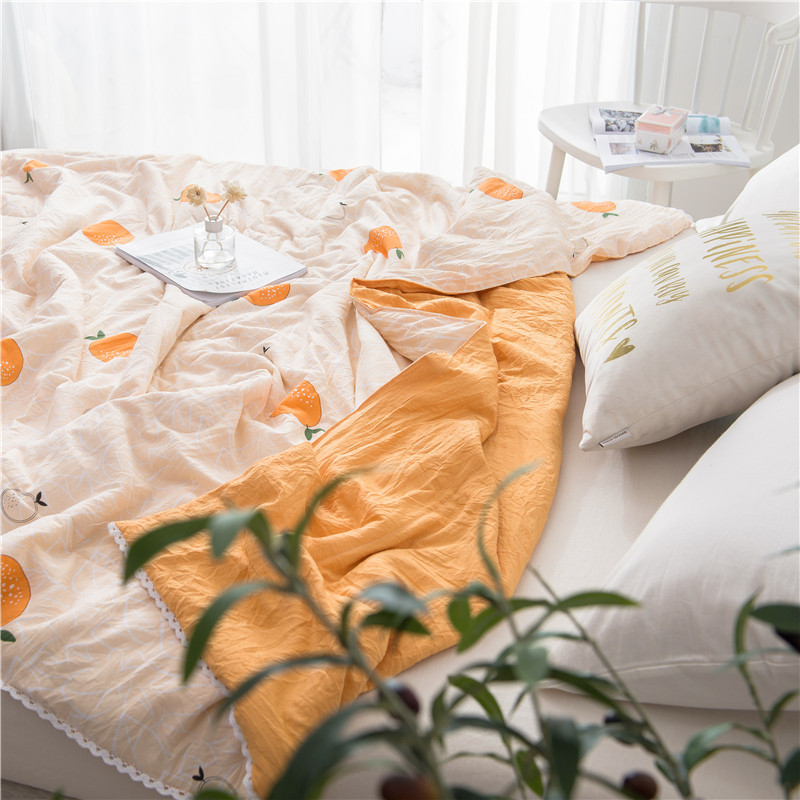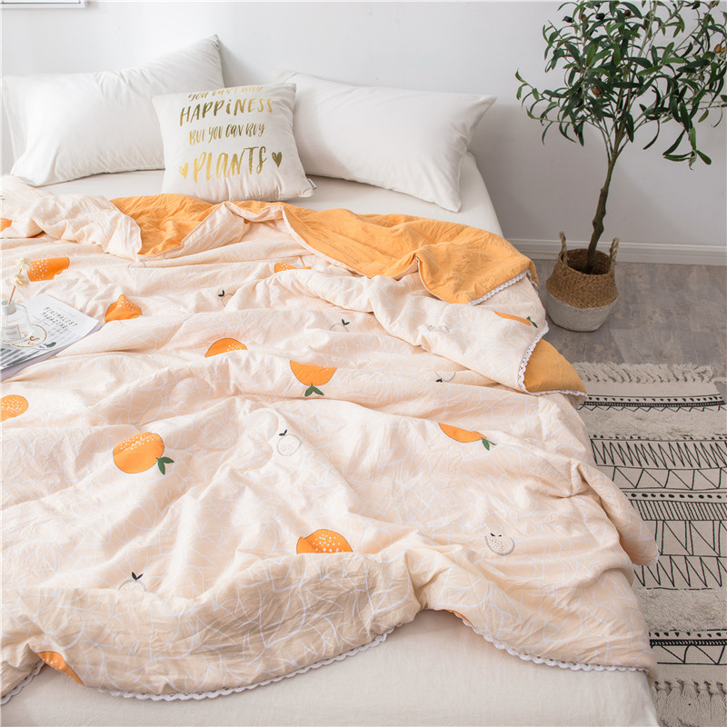 寐居 2022新款亲肤小花边水洗棉单夏被 我爱橘子