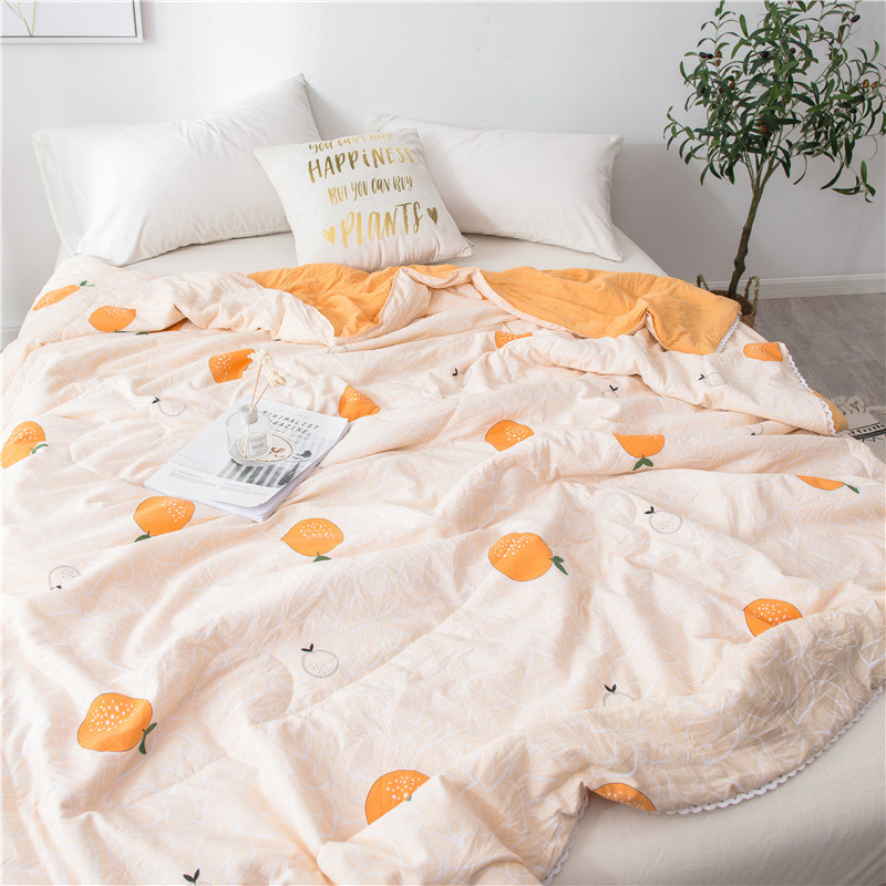 商品名称:寐居 2022新款亲肤小花边水洗棉单夏被 我爱橘子