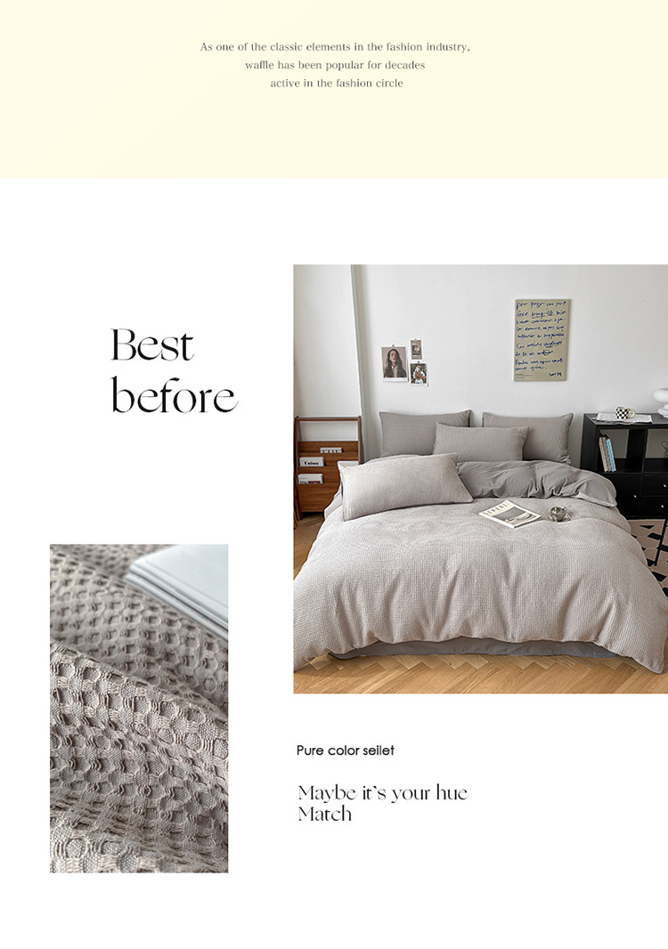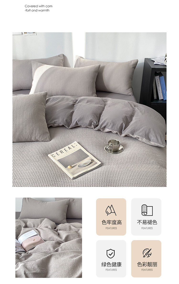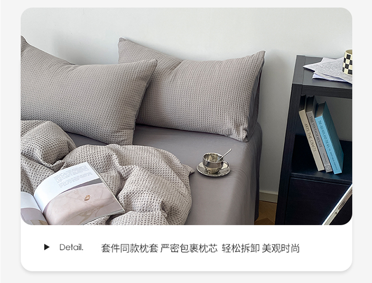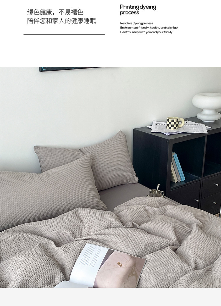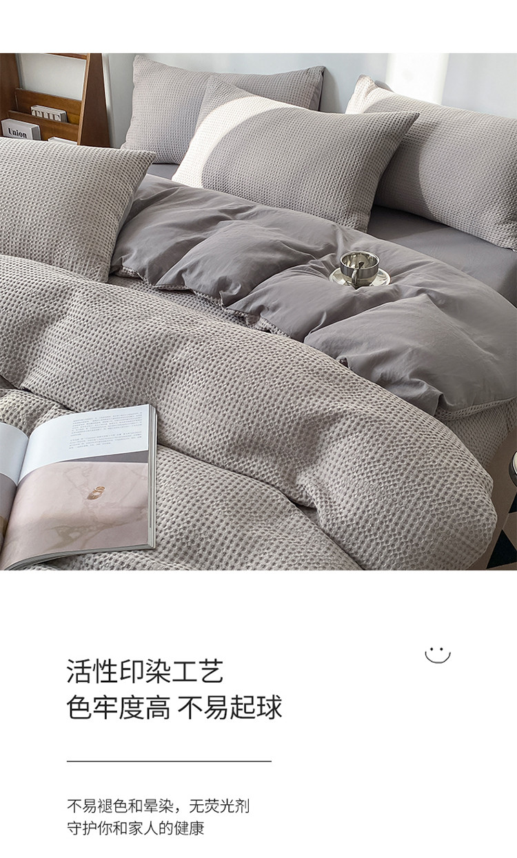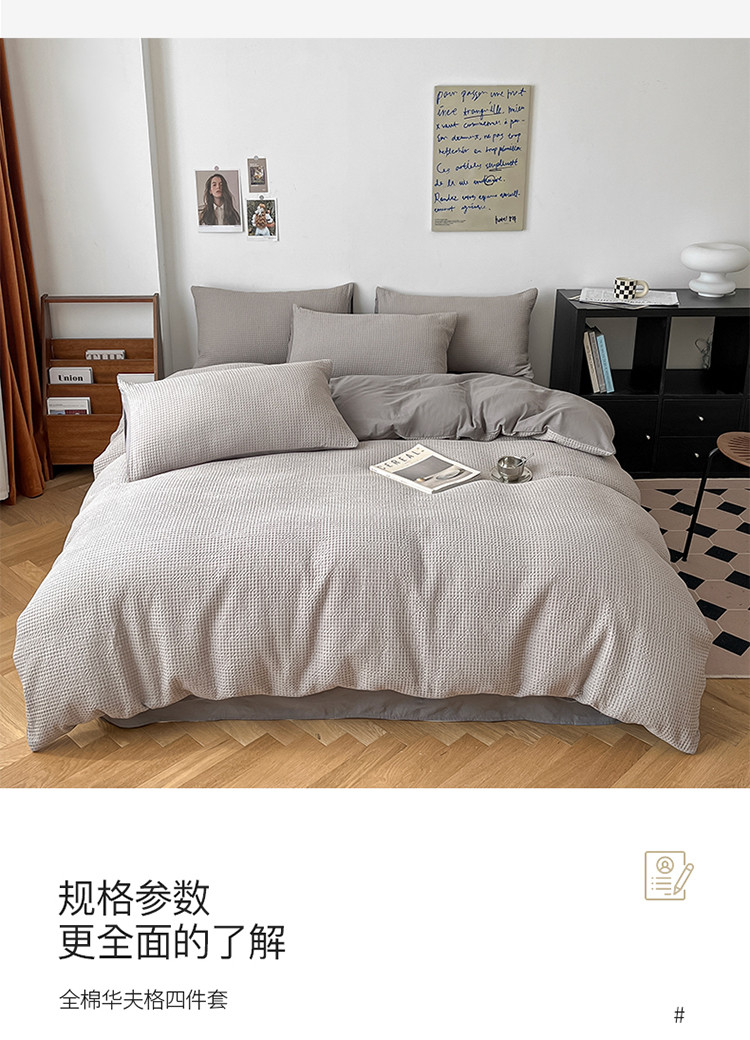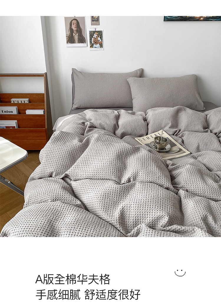(总)雅居纺家纺 2022新款全棉华夫格普通款四件套,焦糖,米驼,奶油白,柔粉,深灰,雾蓝,月灰