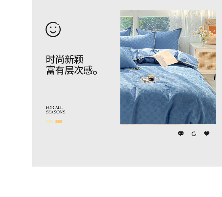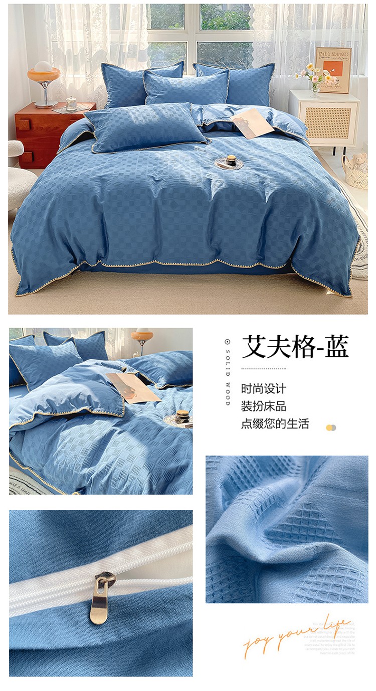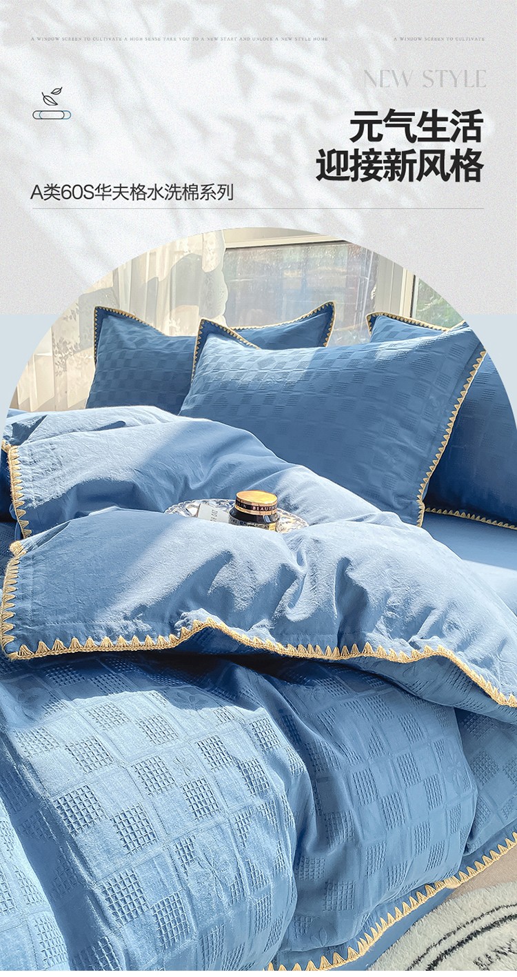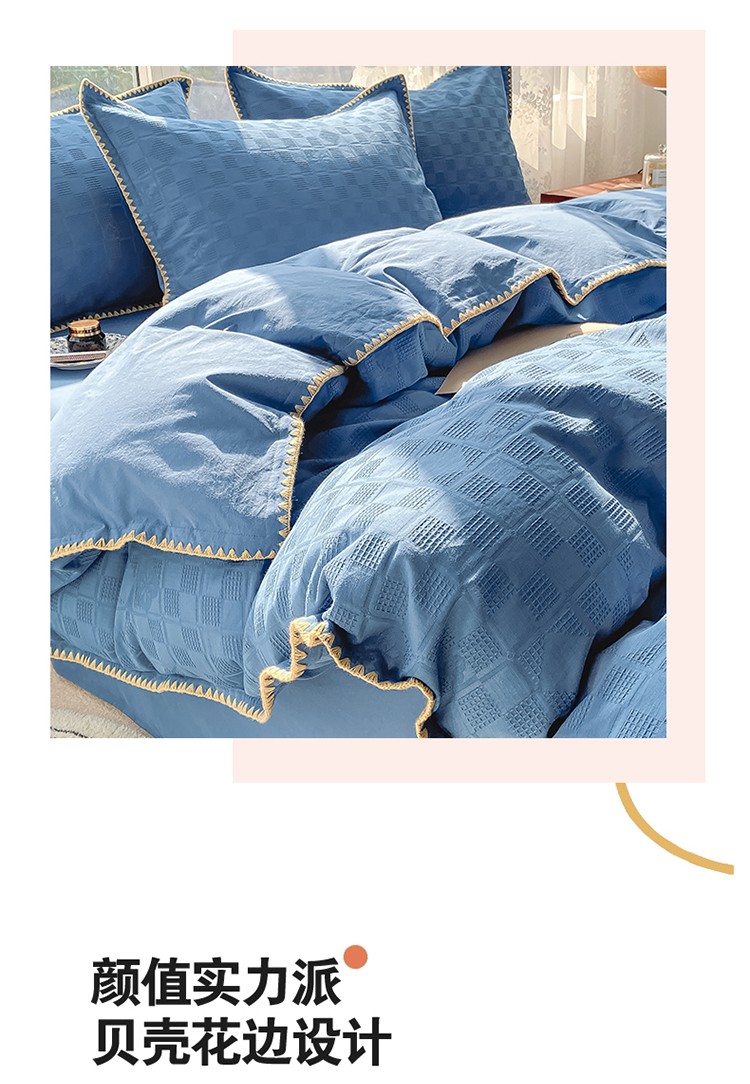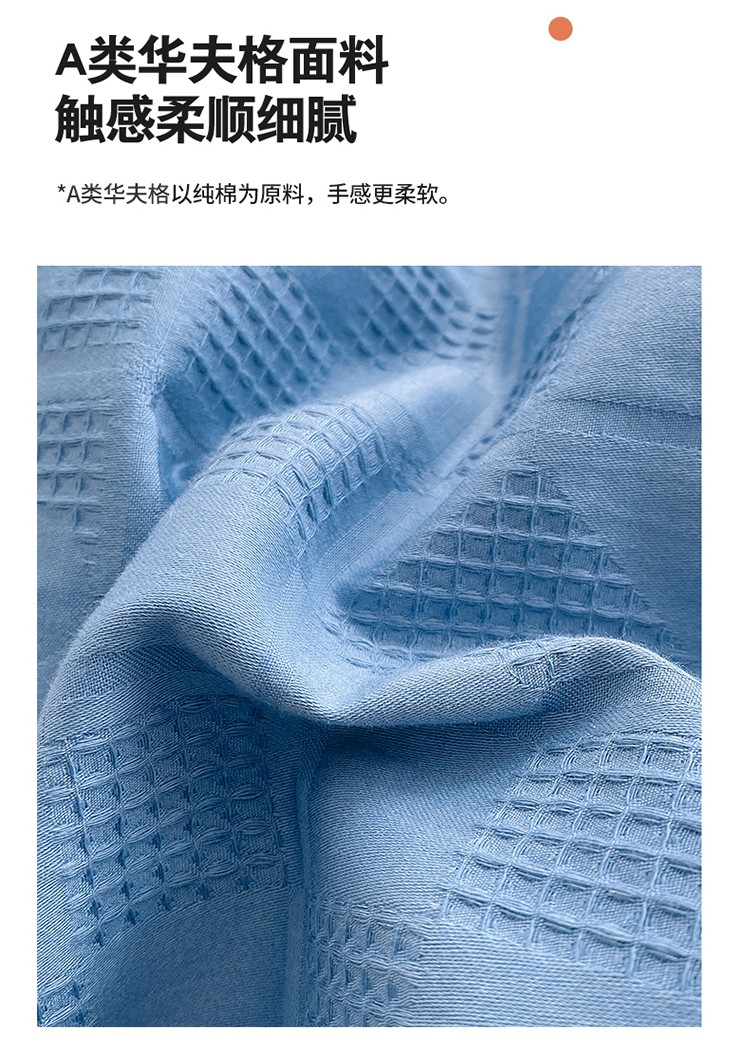 商品名称:蓝米卡夫家居2024款A类60S华夫格贝壳针水洗棉系列 艾夫格-蓝