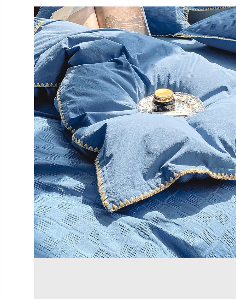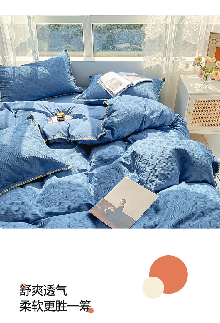 蓝米卡夫家居2024款A类60S华夫格贝壳针水洗棉系列 艾夫格-蓝