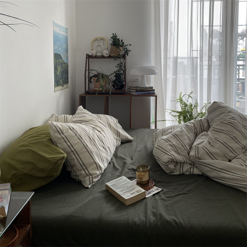 当前位置: 91家纺网 > 商品网购 > 床品套件 > 四件套 > 全棉普通四件套 > 恋恋三季全棉色织水洗棉VINTAGE中古风条纹-橄榄绿+米色