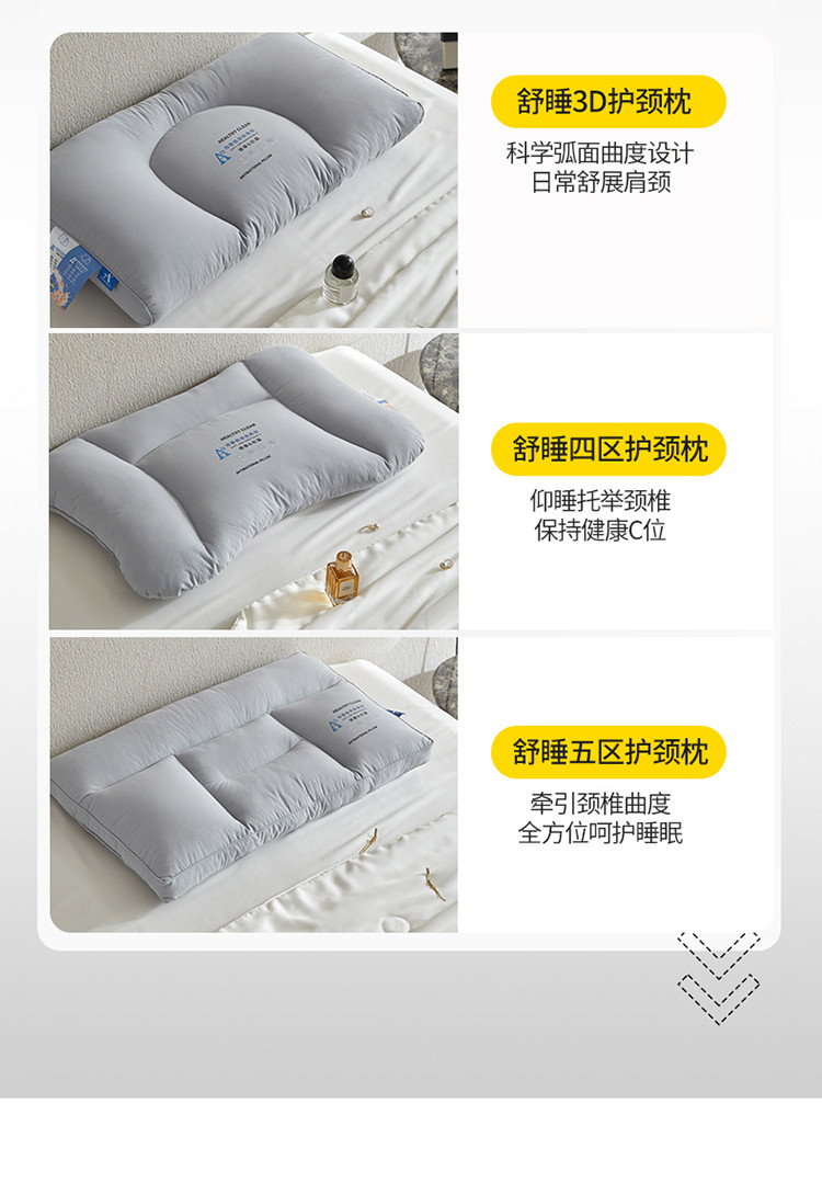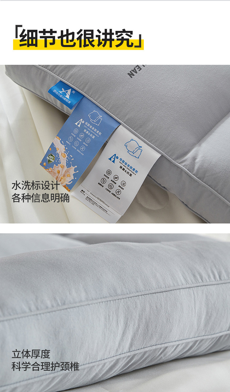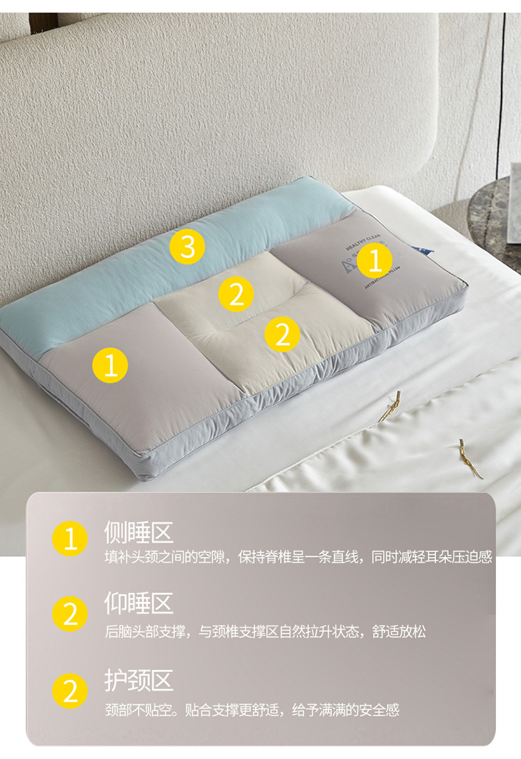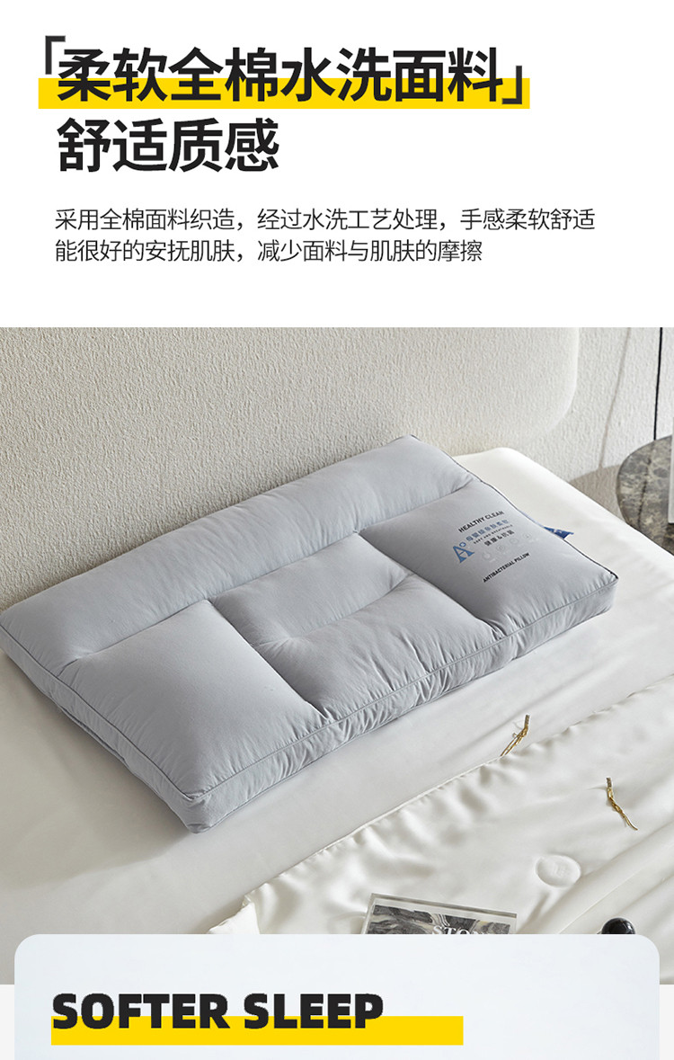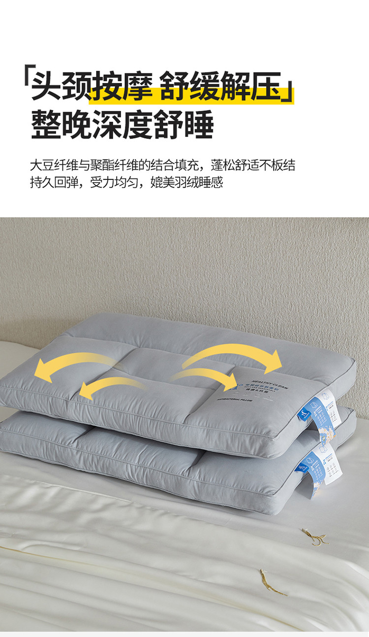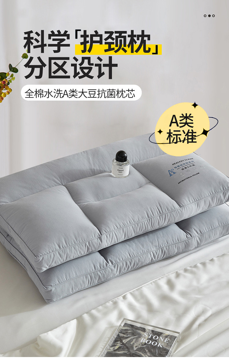 商品名称:定制全棉水洗A类多功能护颈大豆抗菌枕芯 舒睡五区护颈-灰