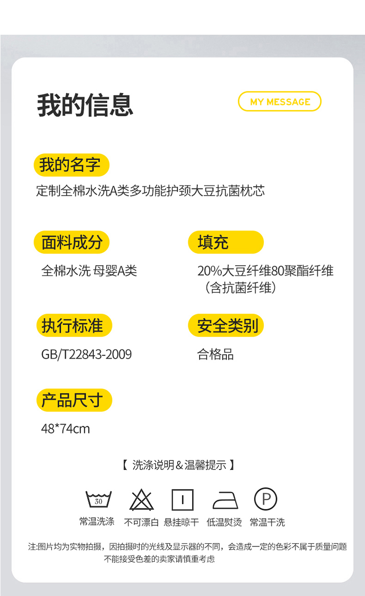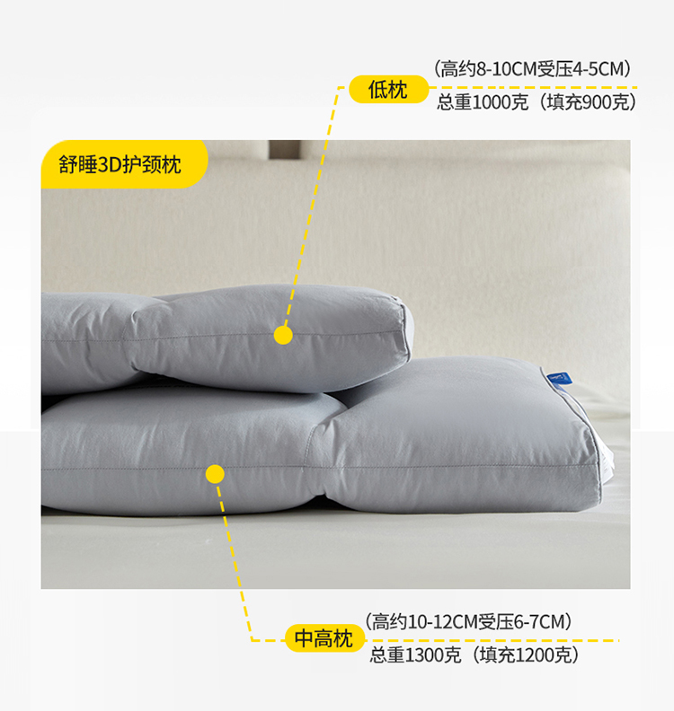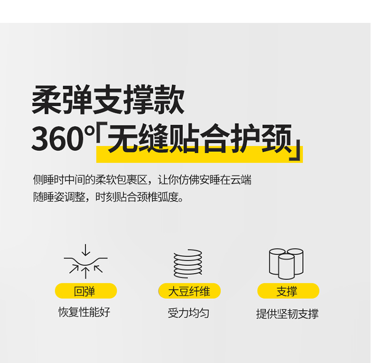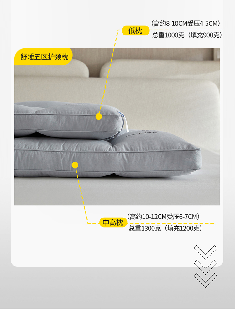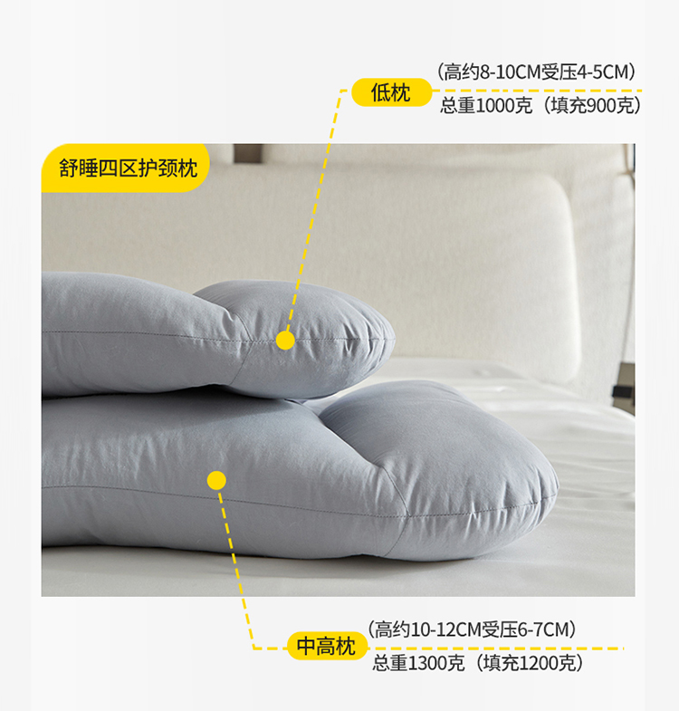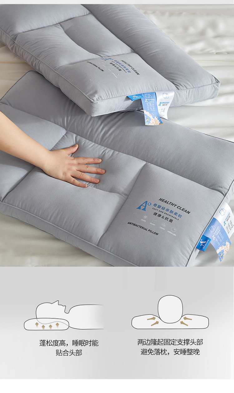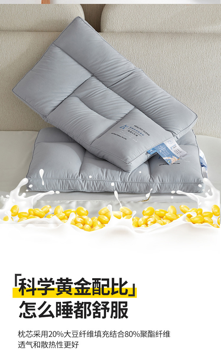 商品名称:定制全棉水洗A类多功能护颈大豆抗菌枕芯 舒睡五区护颈-灰