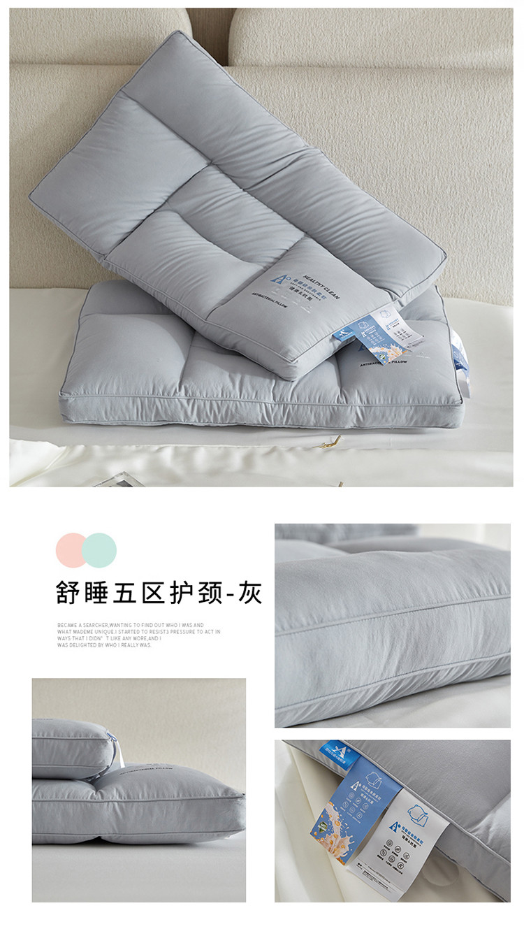 定制全棉水洗A类多功能护颈大豆抗菌枕芯 舒睡五区护颈-灰